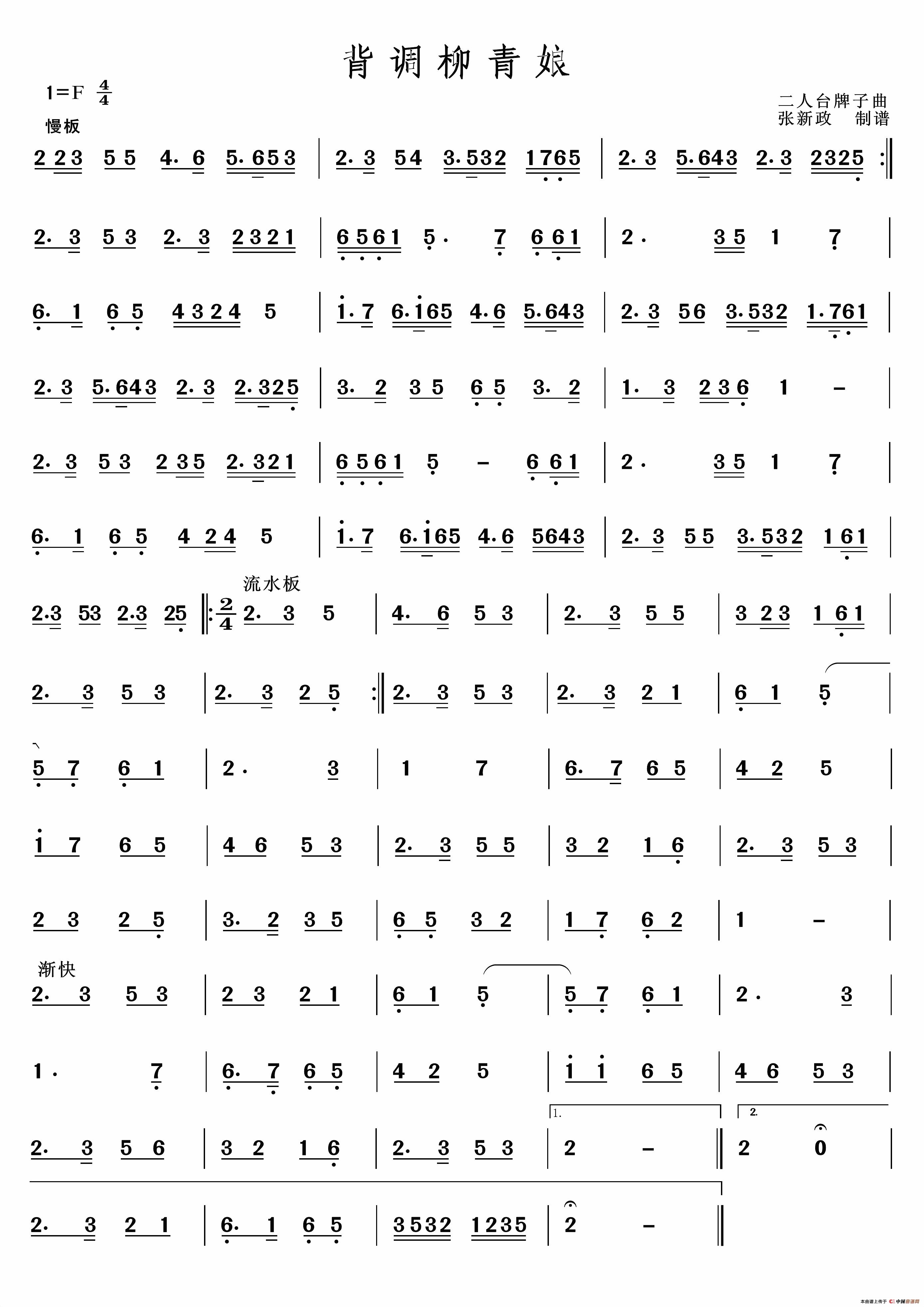 二人台牌子曲曲谱推荐柳青娘(三)(二人台山曲经典)柳青娘(二)(二人台经典山曲主旋律谱)推碌碡(二人台牌子曲、民乐合奏总谱)双头柳青娘-帽子头(二人台经典山曲主旋律谱)柳青娘(一)(二人台经典山曲主旋律谱)单头柳青娘-呀圪嫩花(二人台经典山曲主旋律谱)