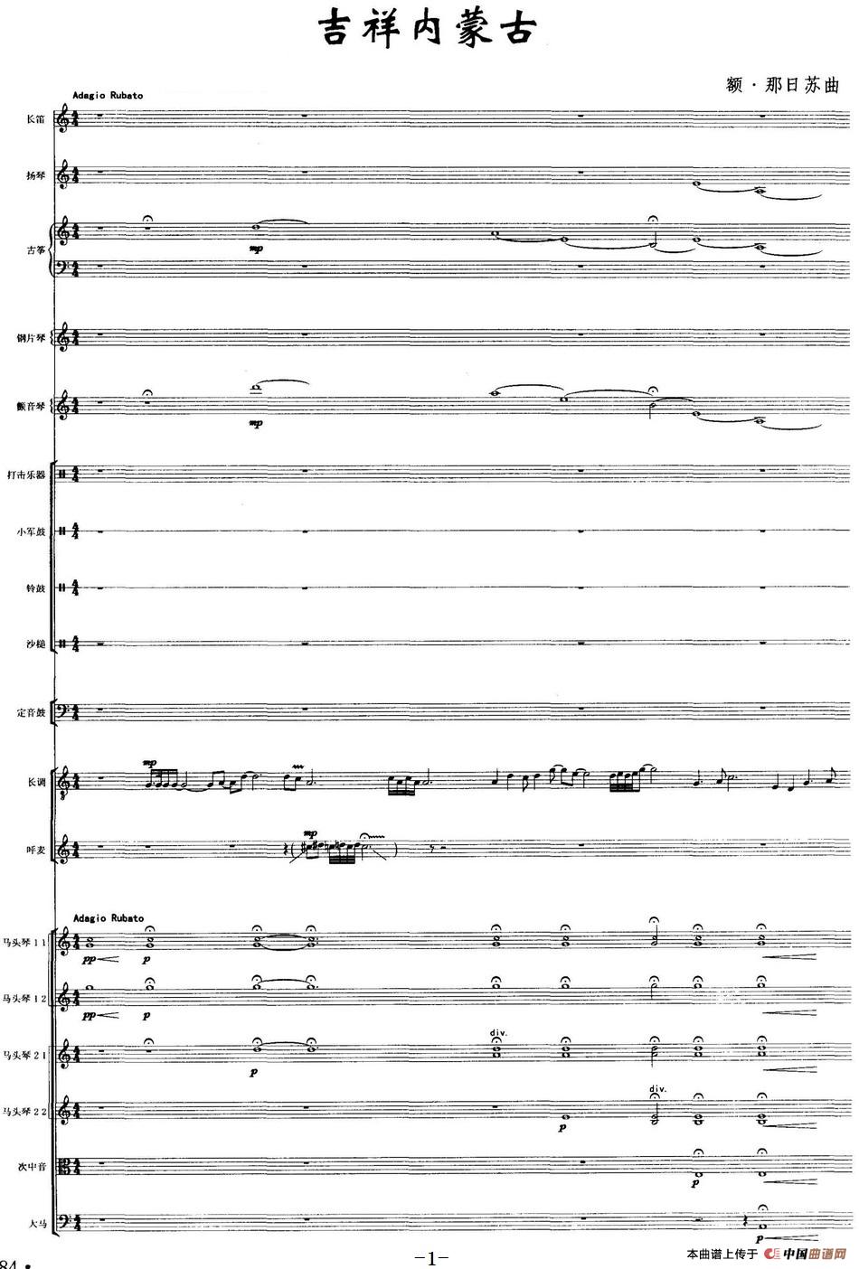 吉祥内蒙古(马头琴+民乐队合奏总谱)相关五线谱