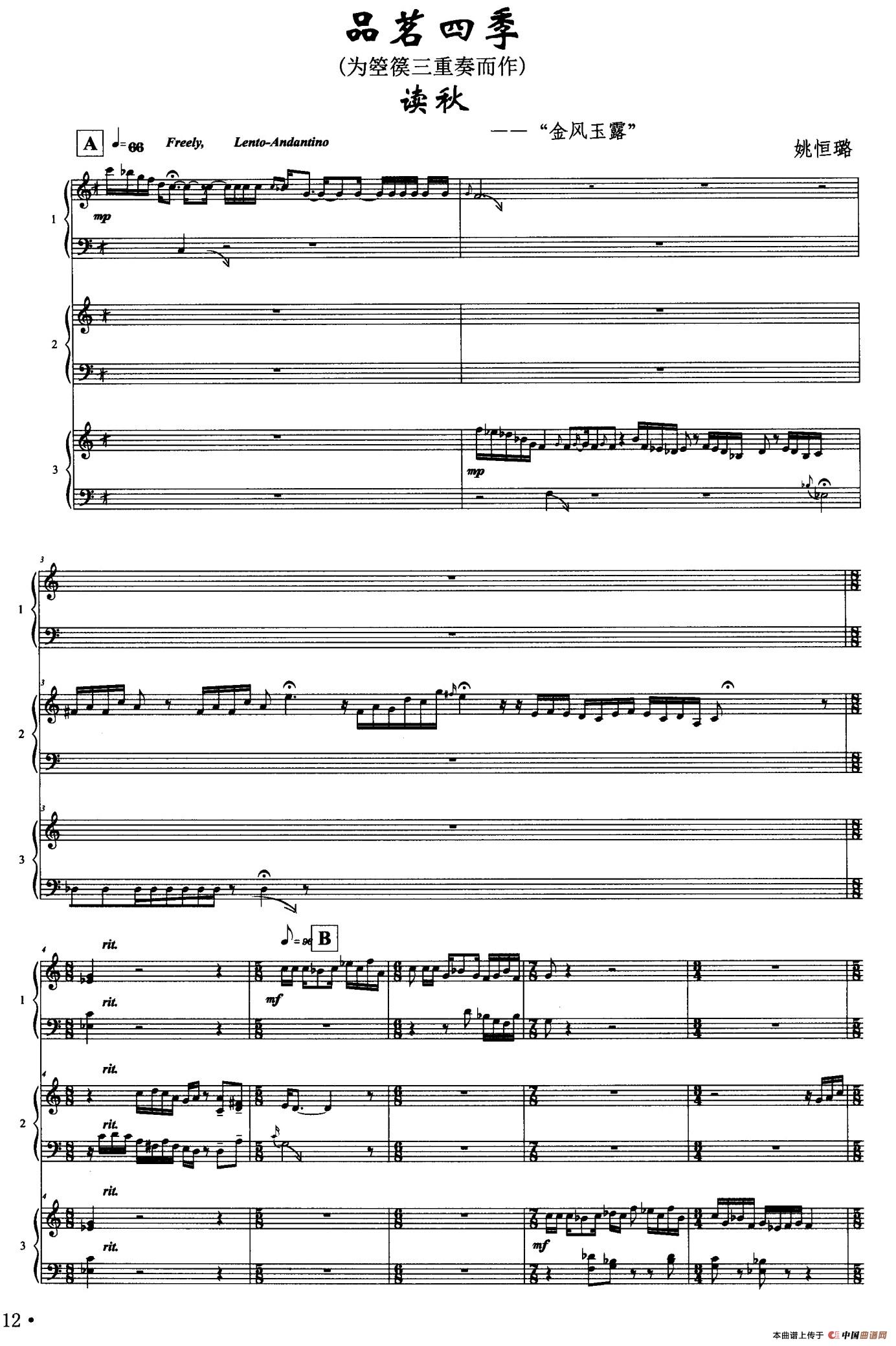 姚恒璐曲谱推荐