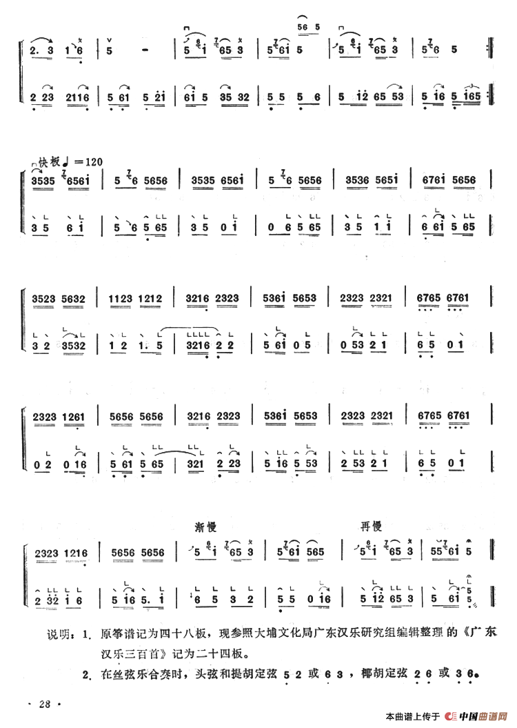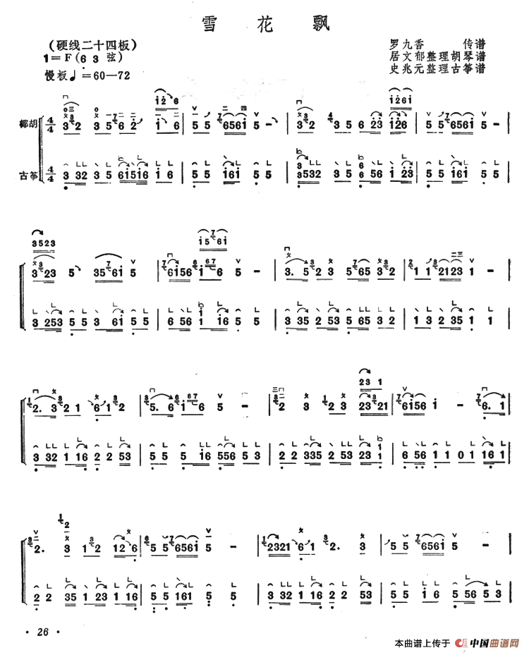 雪花飘(古筝椰胡合奏)相关五线谱