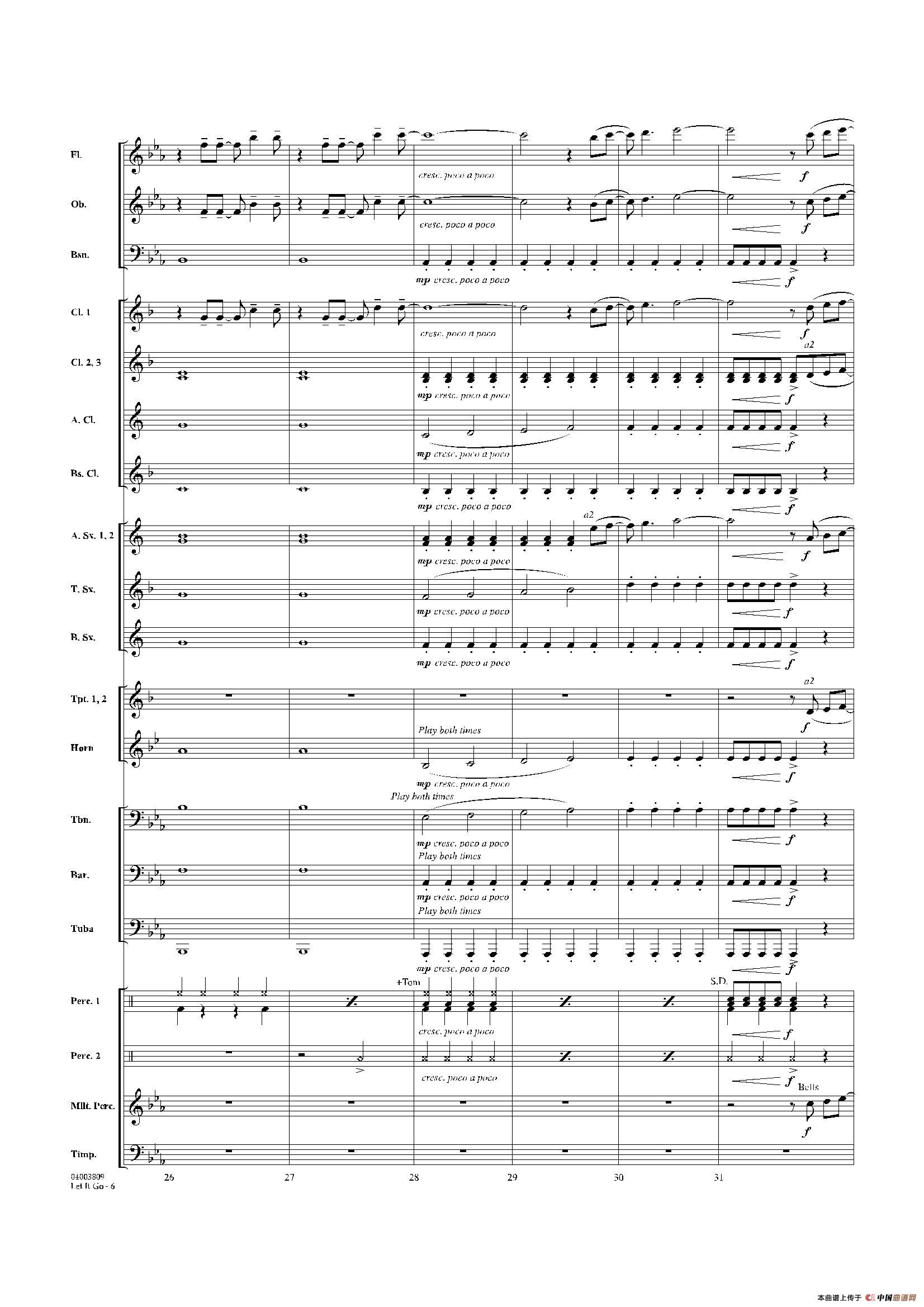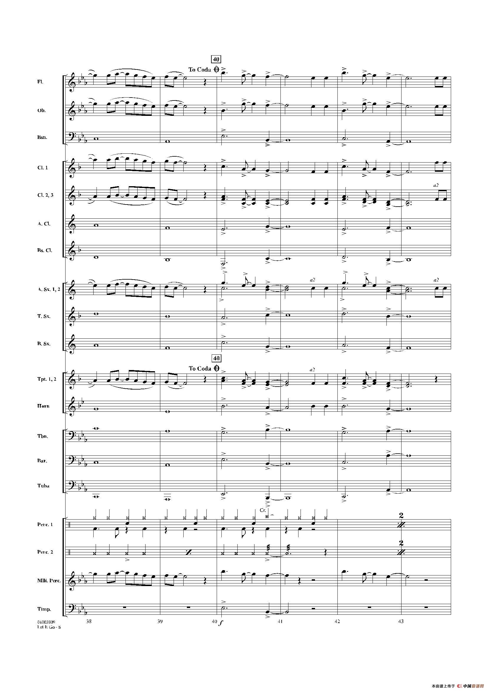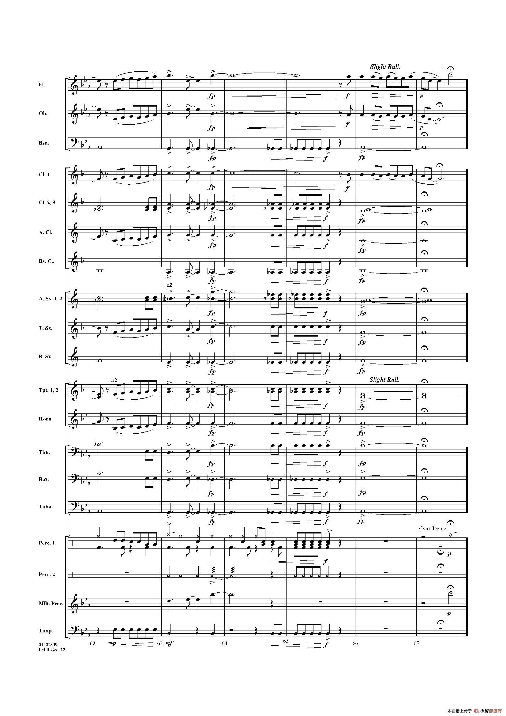 Let it go(《冰雪奇缘》主题曲)(交响管乐总谱)相关五线谱