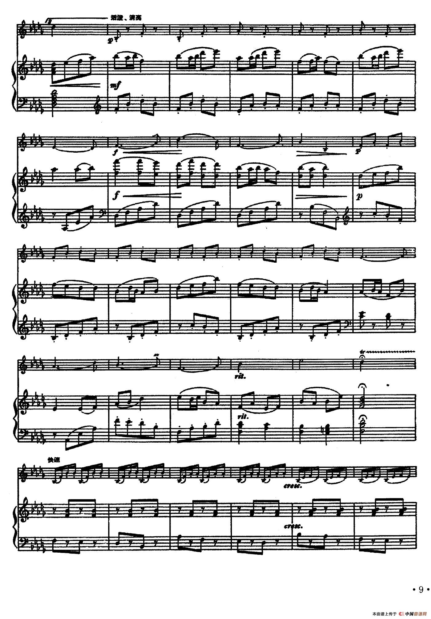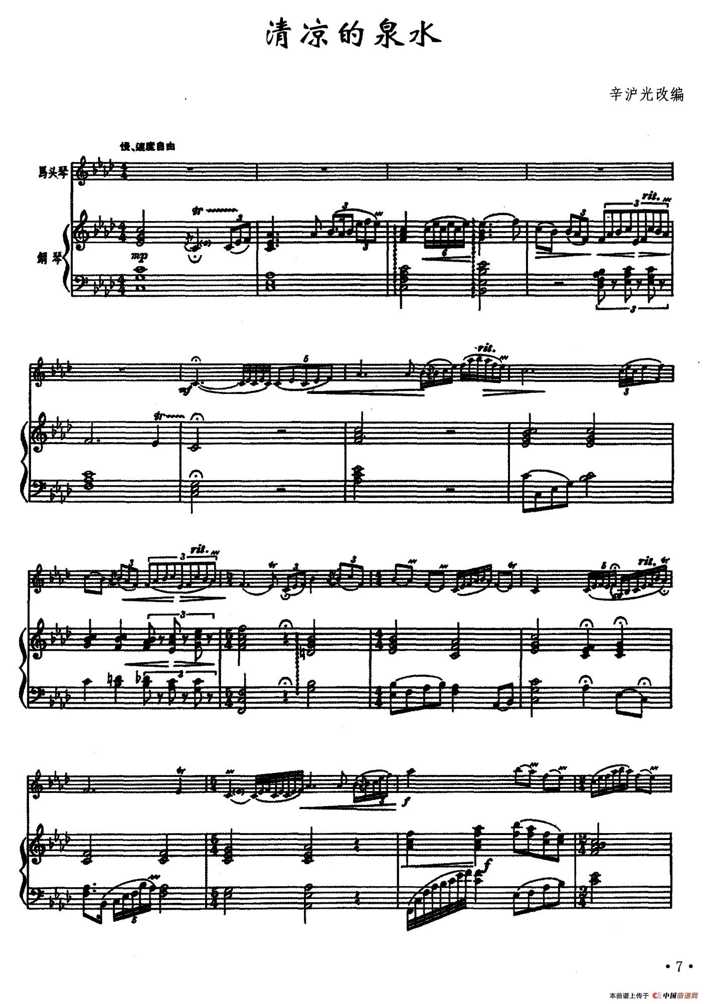 清凉的泉水(马头琴+钢琴)相关五线谱