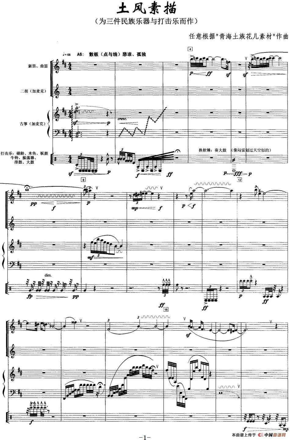 土风素描(为三件民族乐器与打击乐而作)相关五线谱