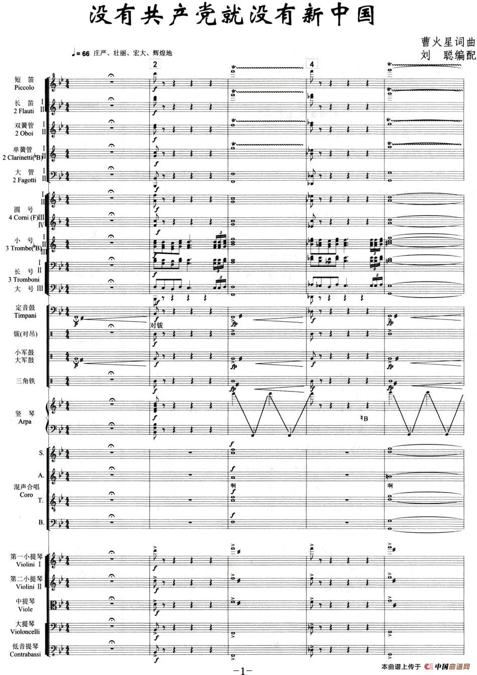 没有共产党就没有新中国(合唱和大乐队伴奏总谱)相关五线谱
