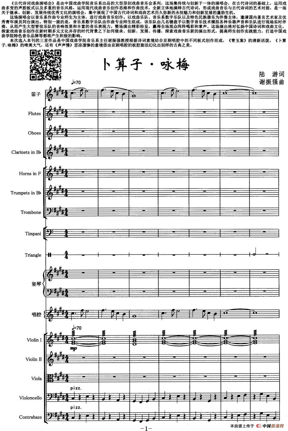 卜算子·咏梅(陆游词 谢振强曲、声乐及伴奏总谱)相关五线谱