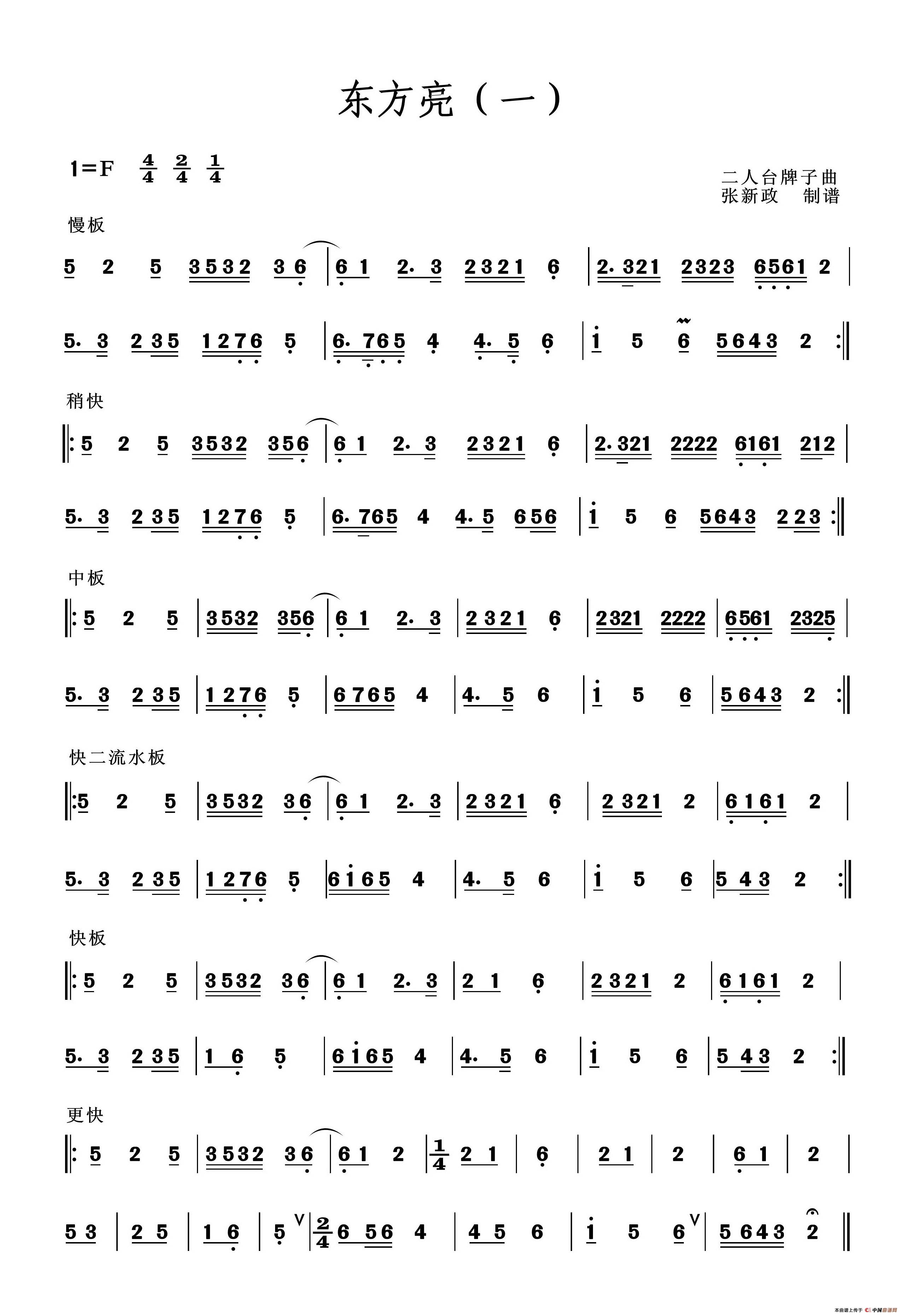 东方亮(一)(二)(二人台牌子曲)相关五线谱