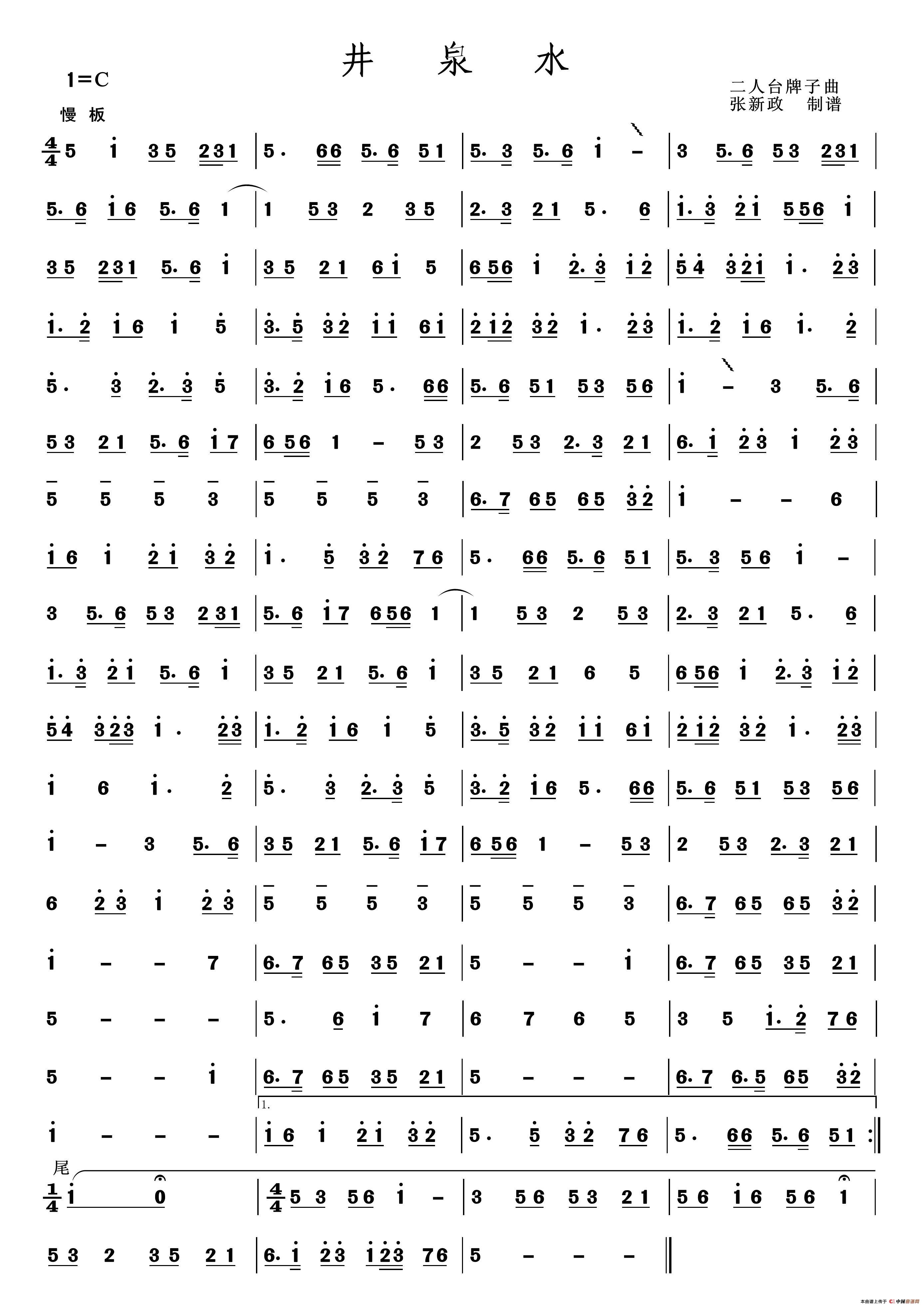 井泉水(二人台牌子曲)相关五线谱
