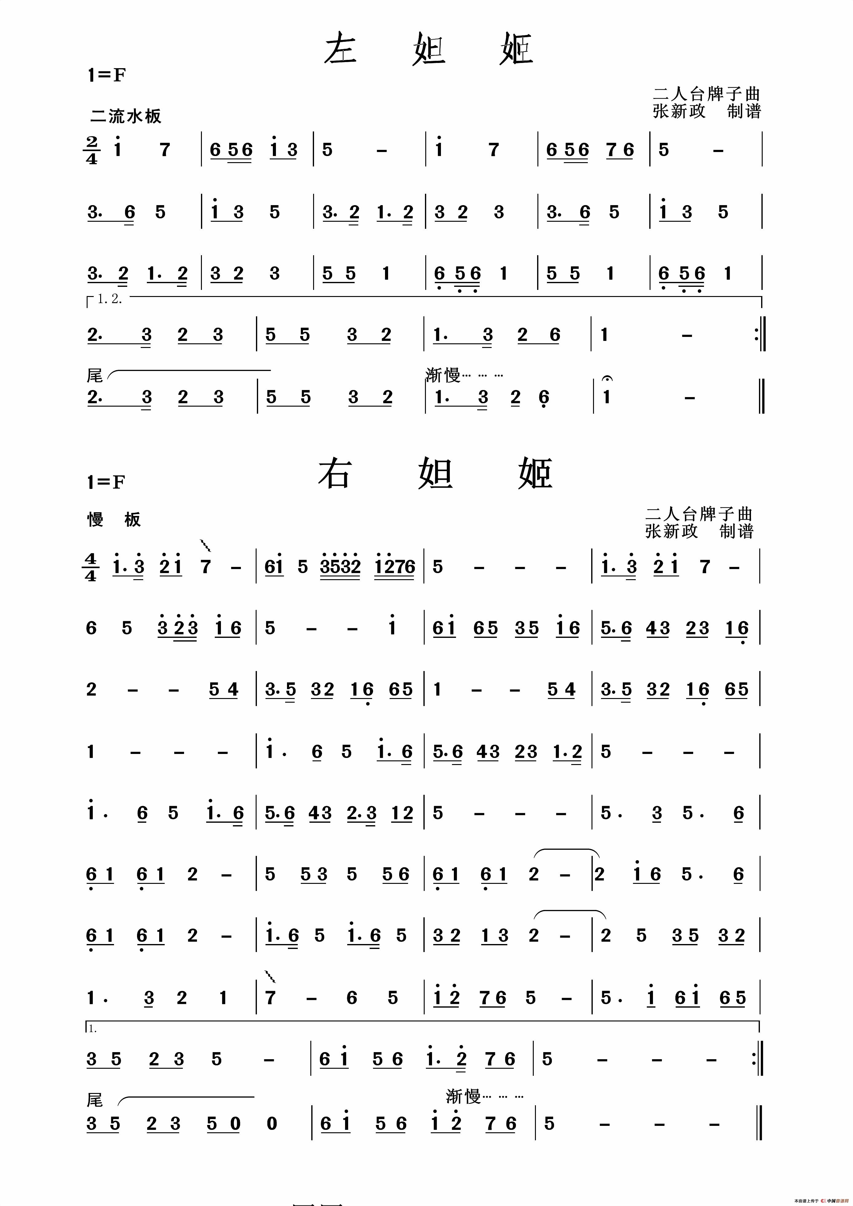 左妲姬 -右妲姬(二人台牌子曲)相关五线谱