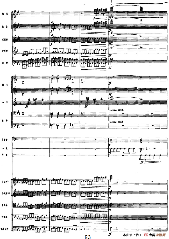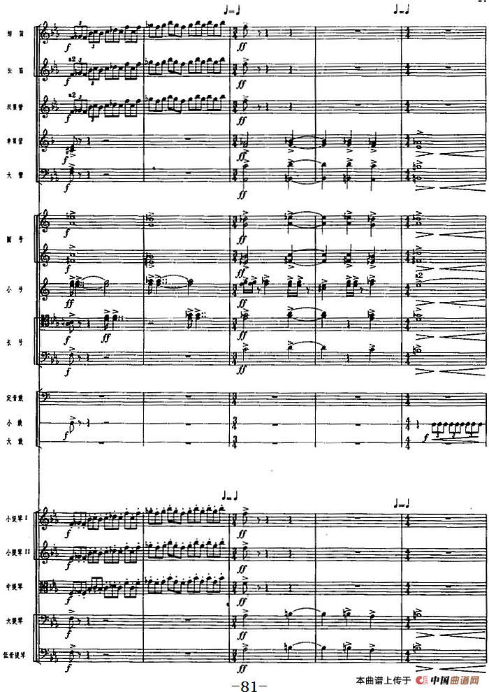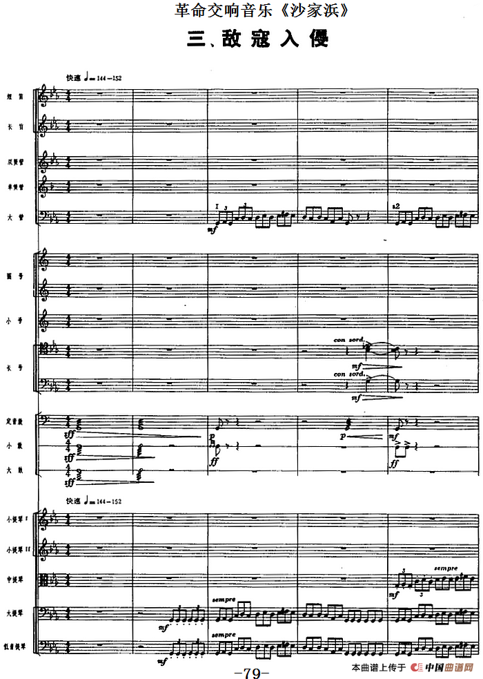革命交响音乐《沙家浜》:三、敌寇入侵相关五线谱