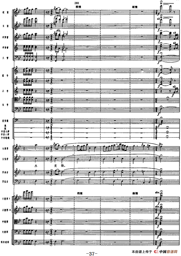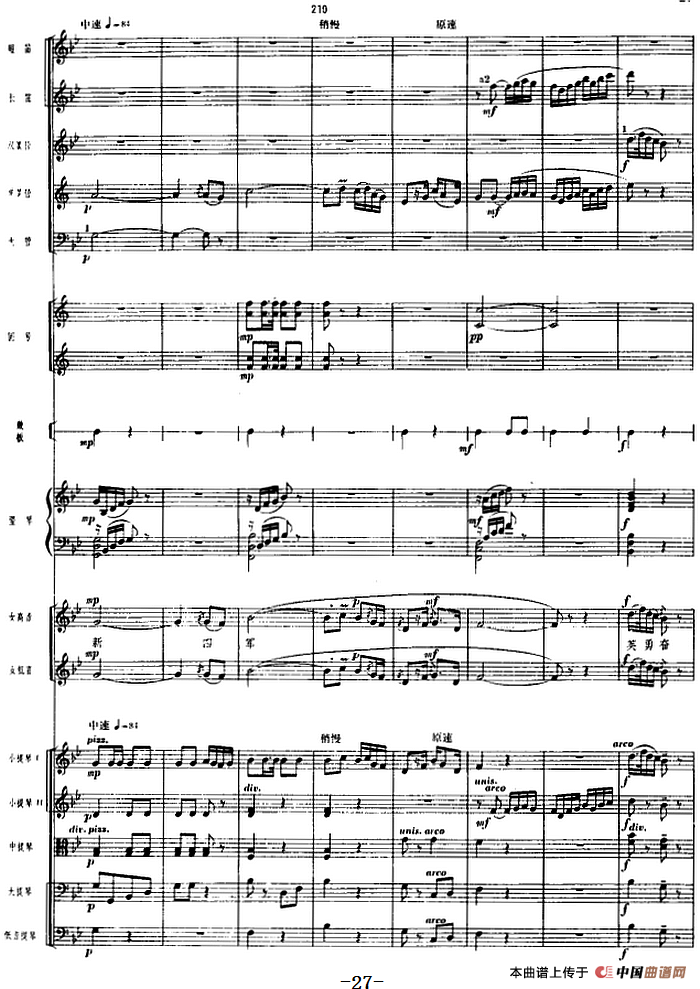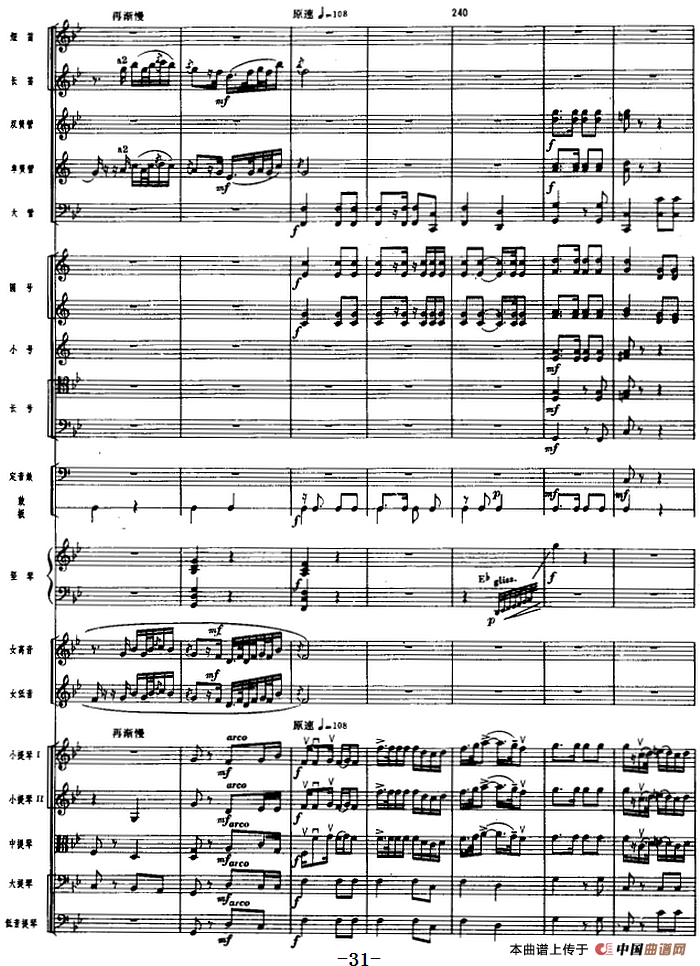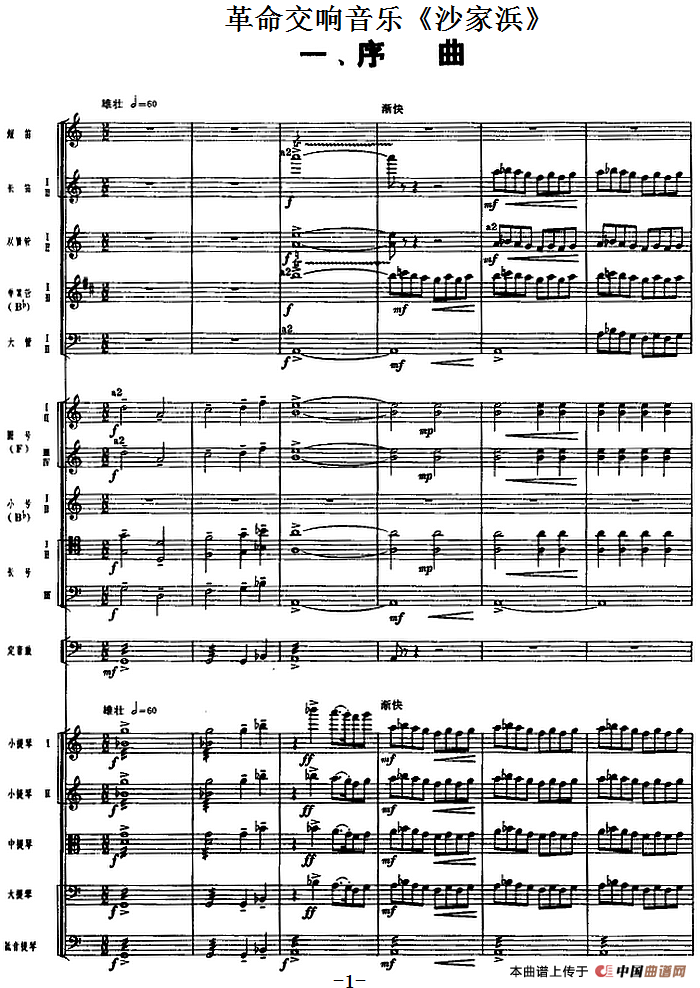革命交响音乐《沙家浜》:一、序曲相关五线谱