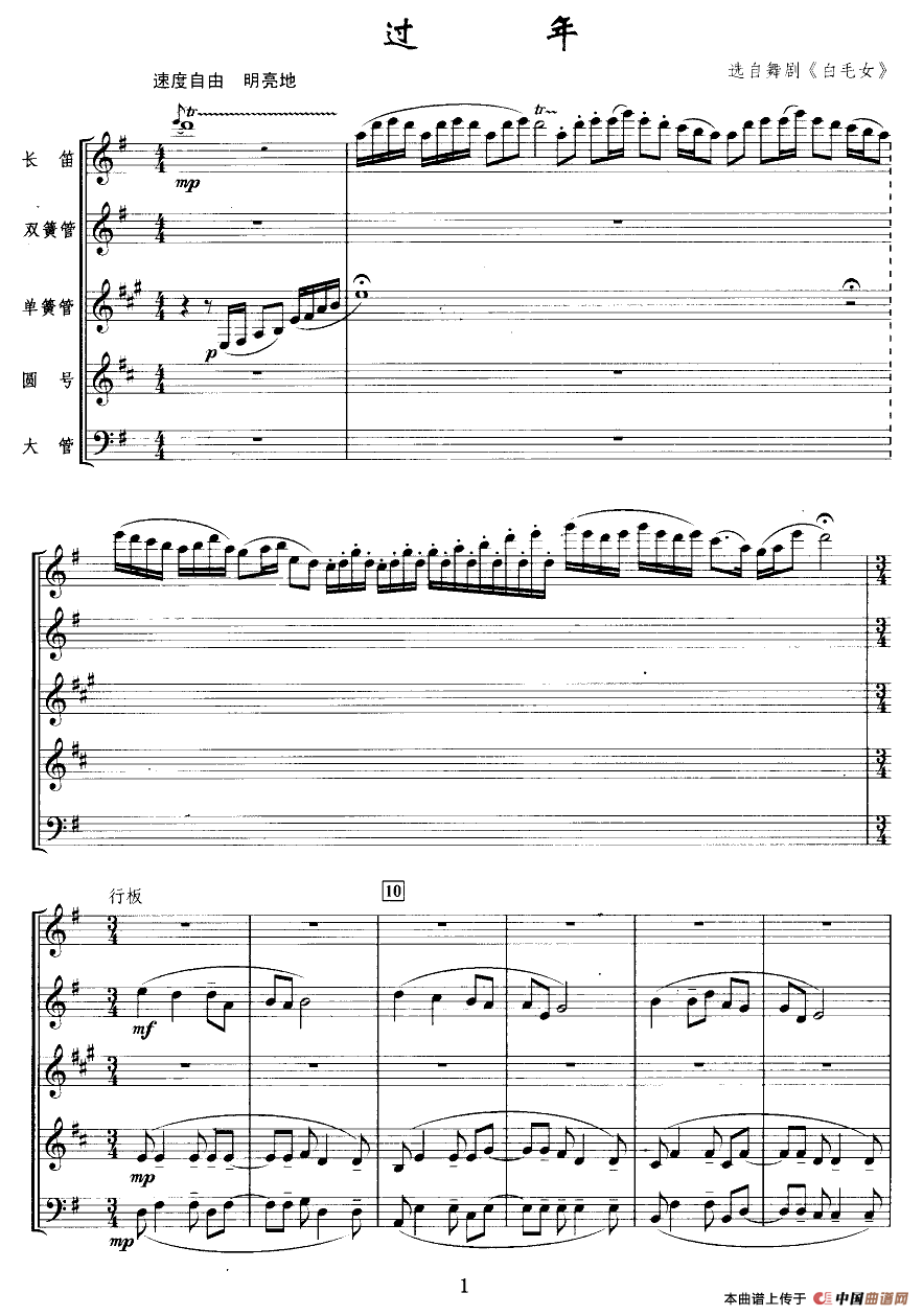 过年(选自舞剧《白毛女》)(管乐五重奏)相关五线谱