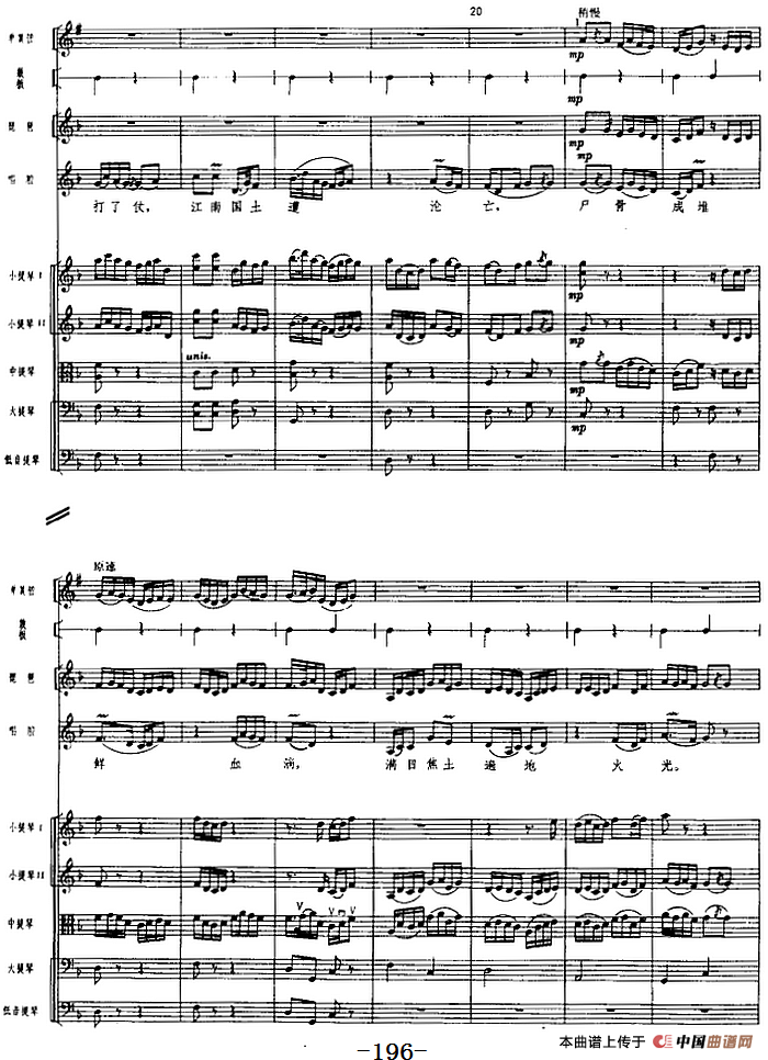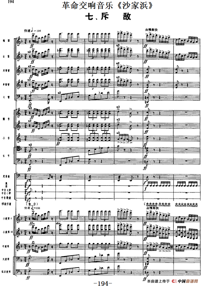 革命交响音乐《沙家浜》:七、斥敌相关五线谱