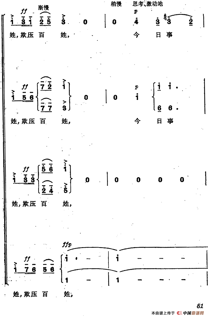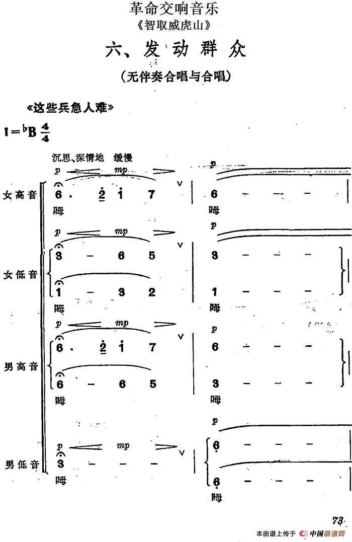 革命交响音乐《智取威虎山》:六、发动群众相关五线谱