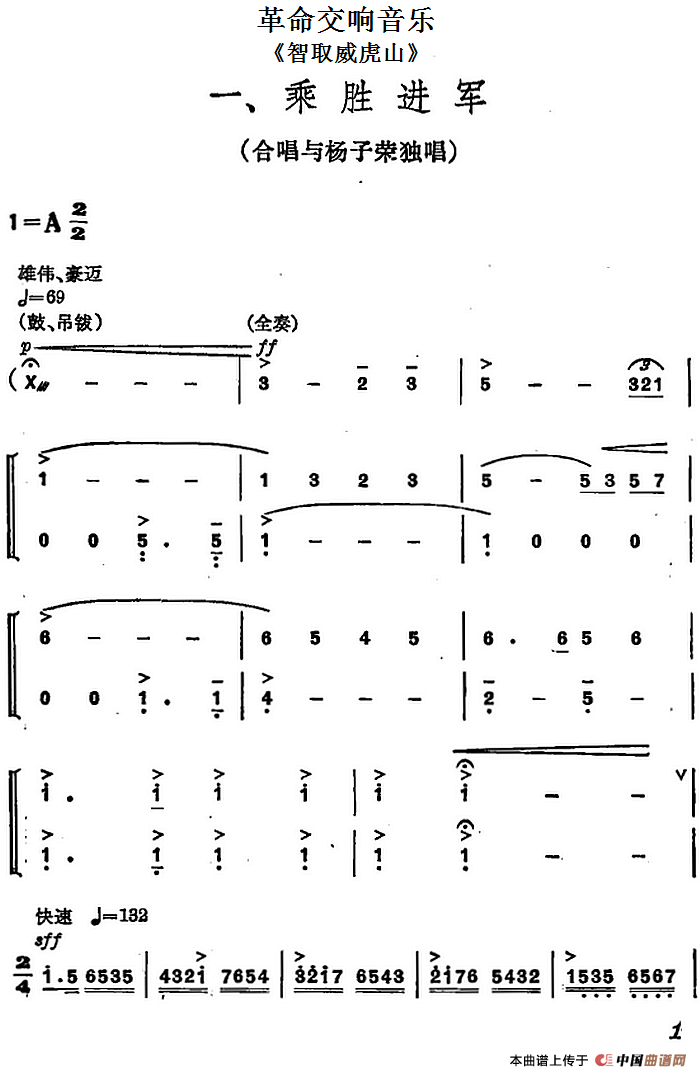 革命交响音乐《智取威虎山》:一、乘胜进军相关五线谱