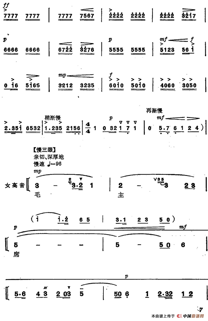 革命现代京剧《杜鹃山》全剧主旋律乐谱之第一场 长夜待晓