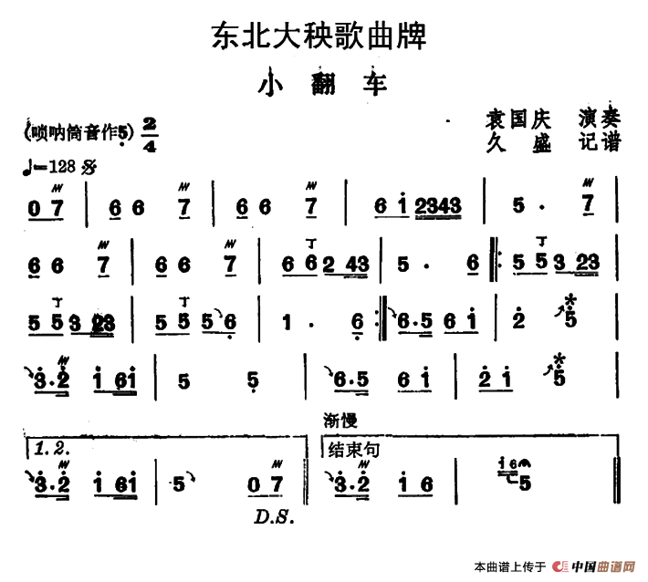 东北大秧歌曲牌:小翻车相关五线谱