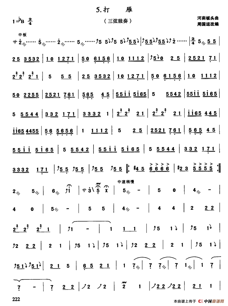 打雁(三弦独奏)相关五线谱