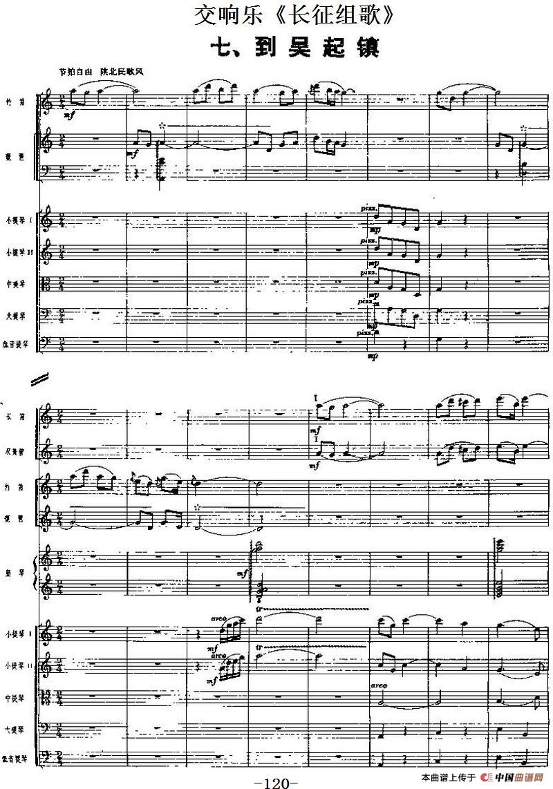 交响乐《长征组歌》七、到吴起镇(总谱)相关五线谱