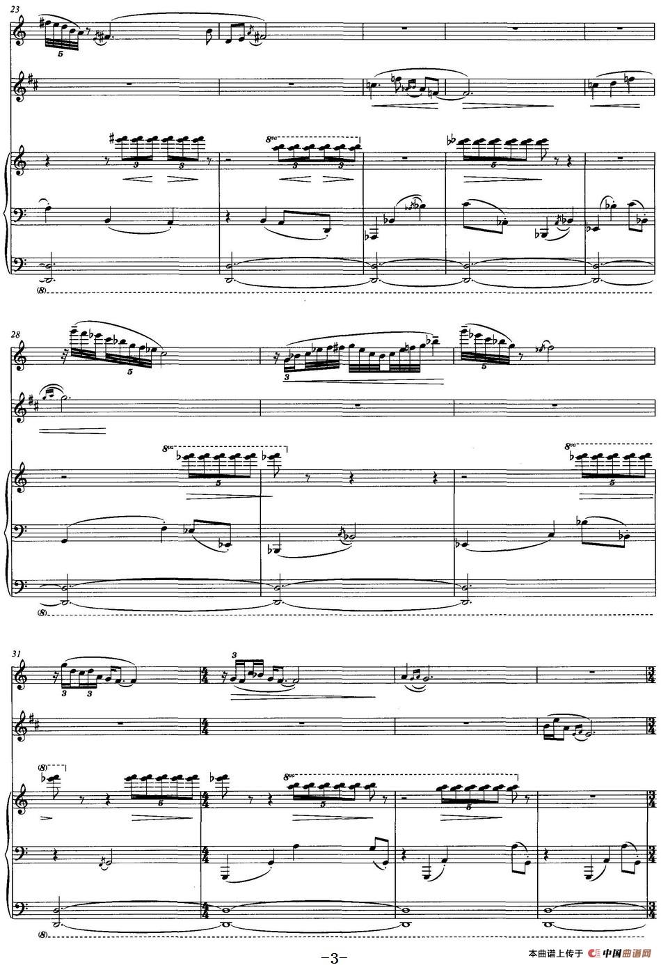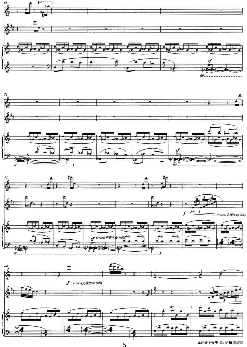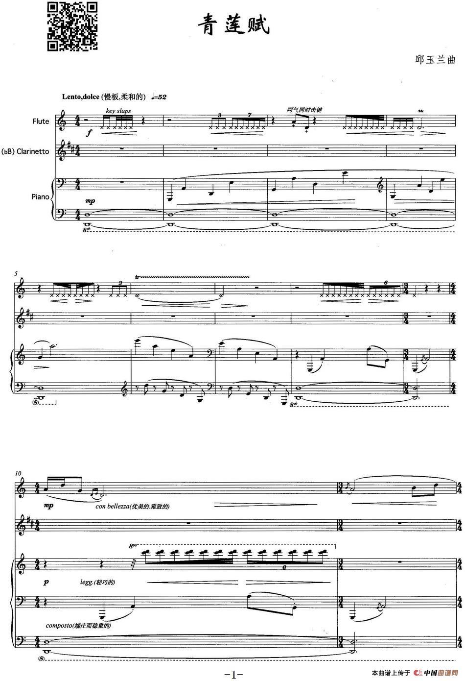 青莲赋(长笛+单簧管+钢琴)相关五线谱