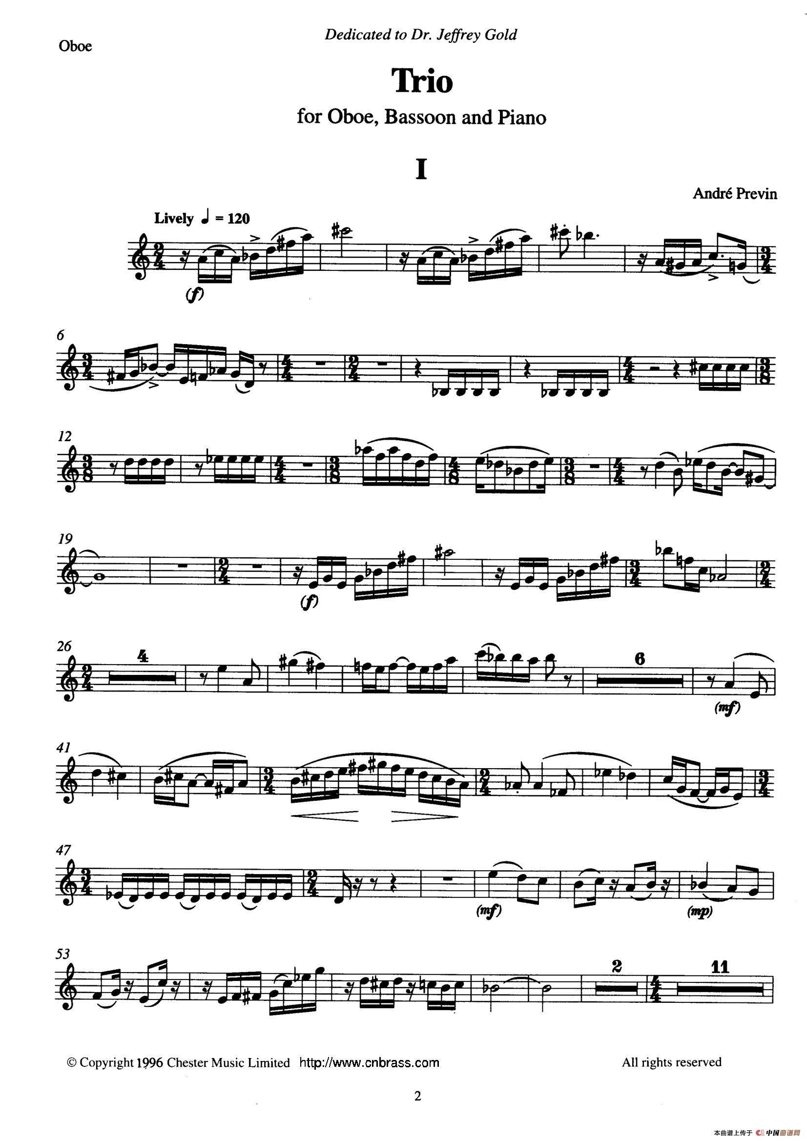 Trio(三重奏双簧管分谱)相关五线谱