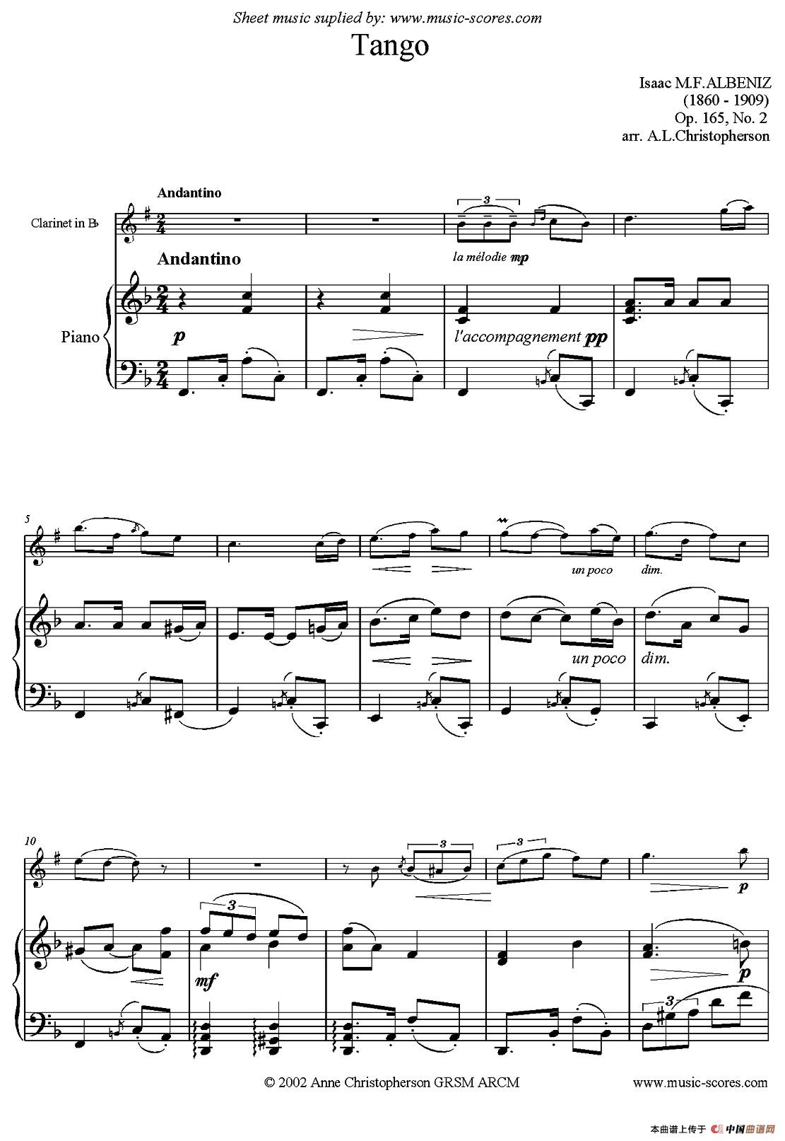 Tango(单簧管+钢琴伴奏)相关五线谱