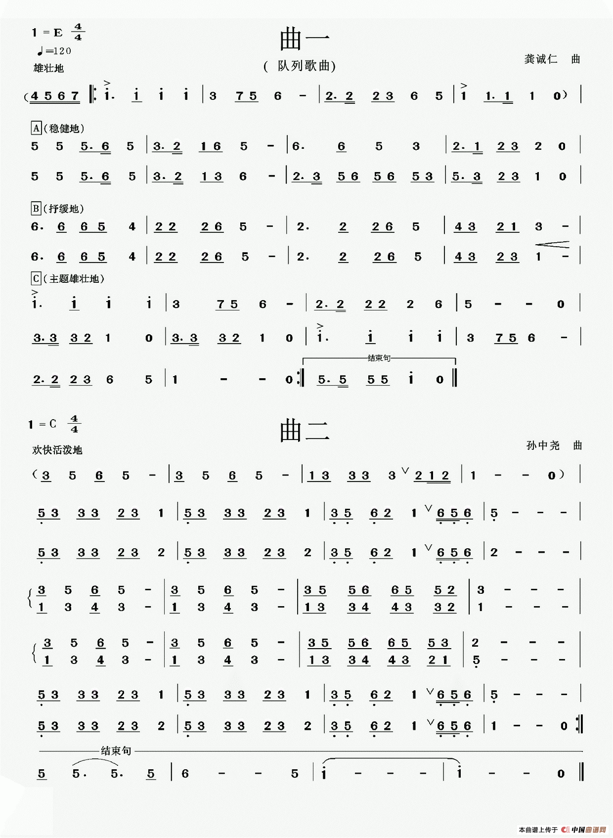 队列歌曲(曲一、曲二)相关五线谱