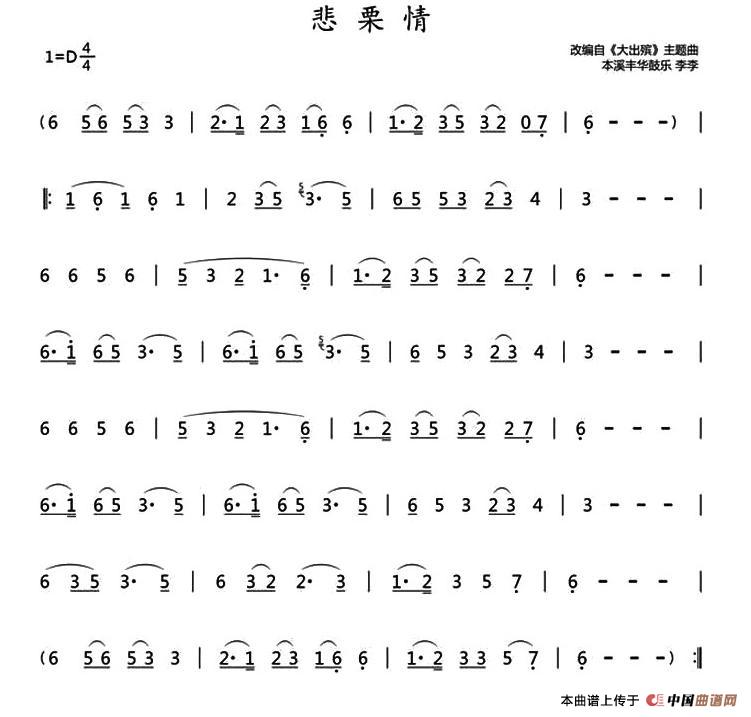 悲栗情(鼓乐旋律)相关五线谱