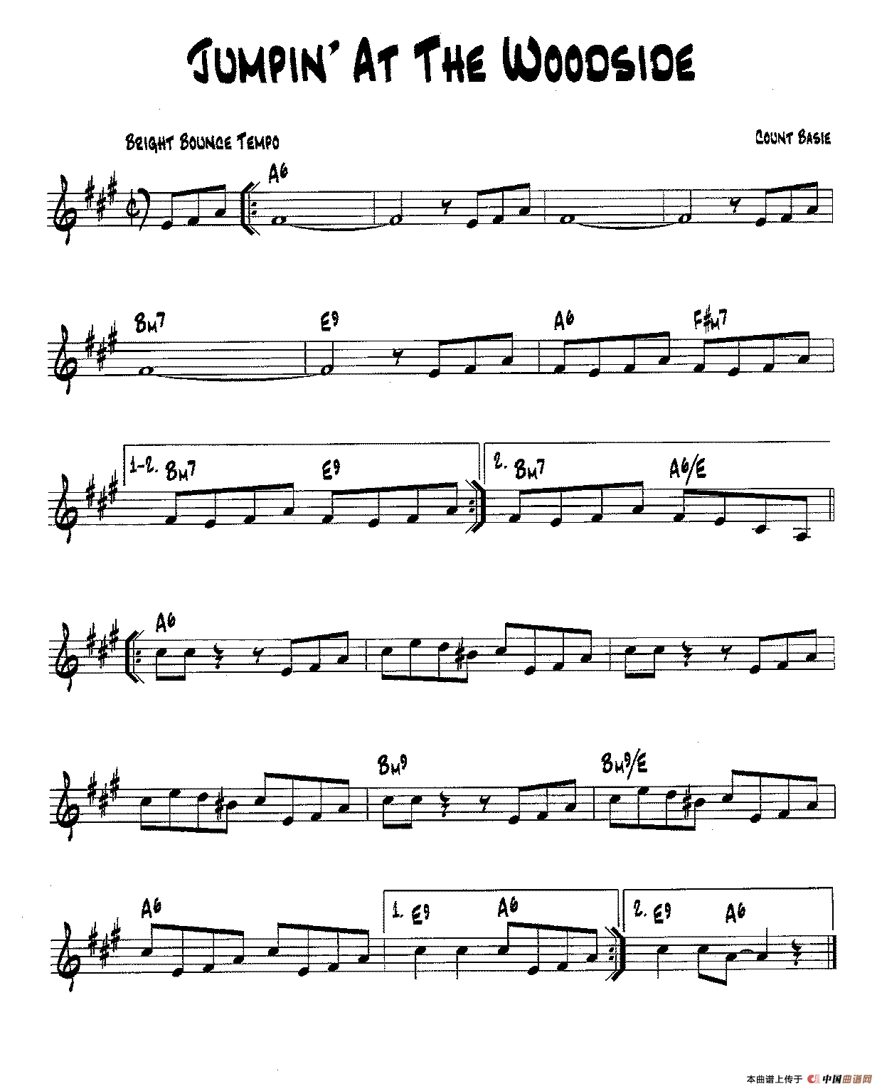 降B爵士乐谱:JUMPIN'AT THE WOODSIDE相关五线谱