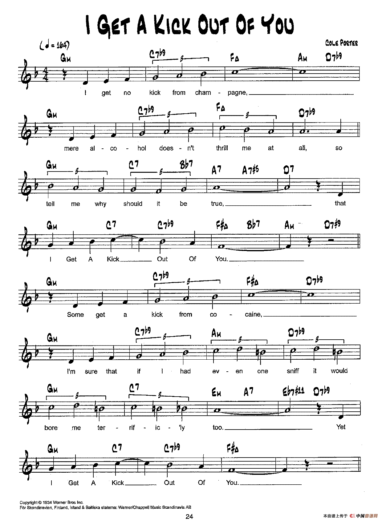 降B爵士乐谱:I GET A KICK OUT OF YOU