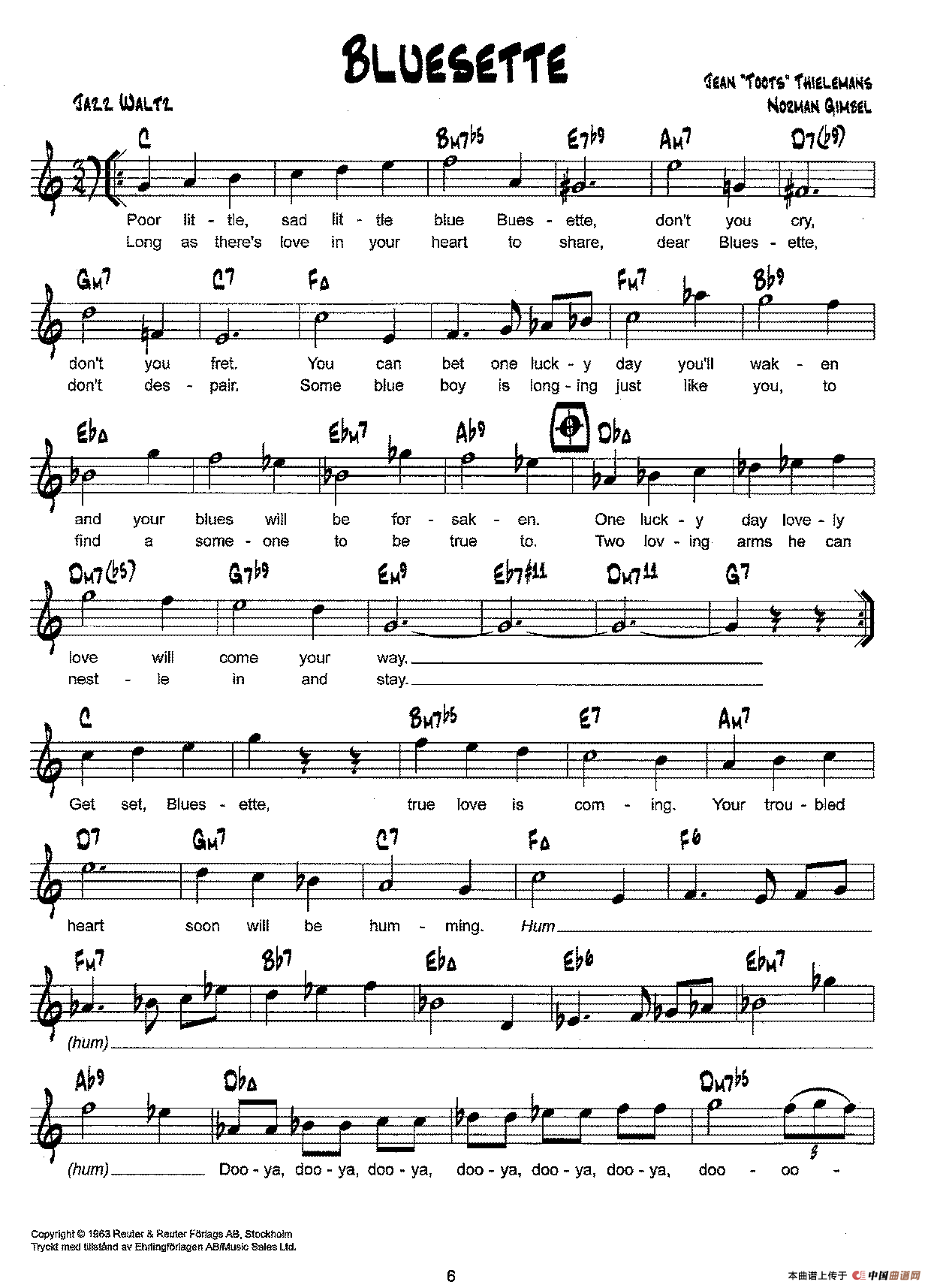 降B爵士乐谱:BLUESETTE相关五线谱