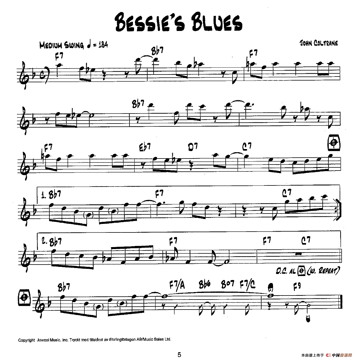 降B爵士乐谱:BESSIE'S BLUES相关五线谱