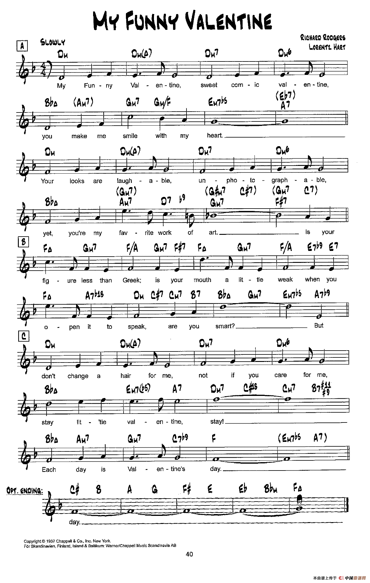 降B爵士乐谱:MY FUNY VALENTINE相关五线谱