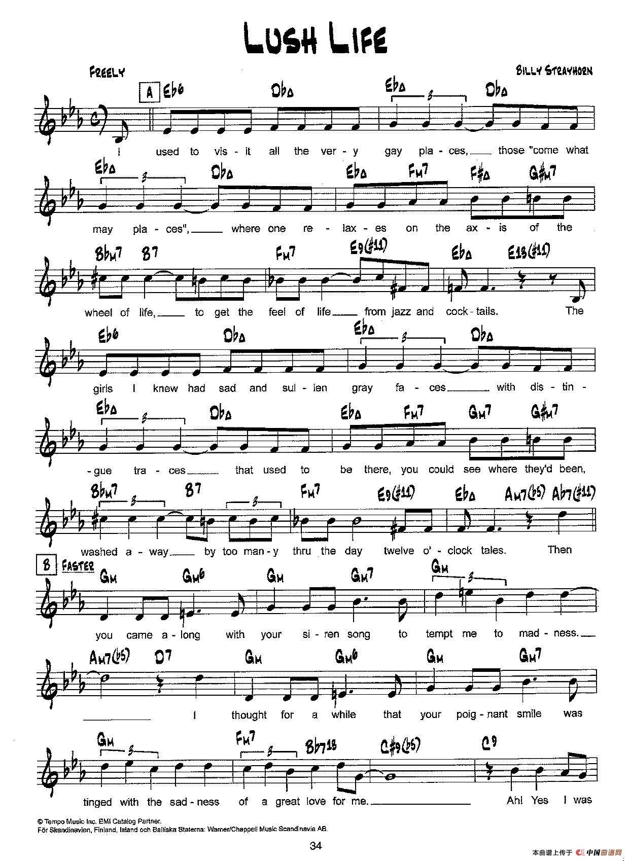 降B爵士乐谱:LUSH LIFE相关五线谱