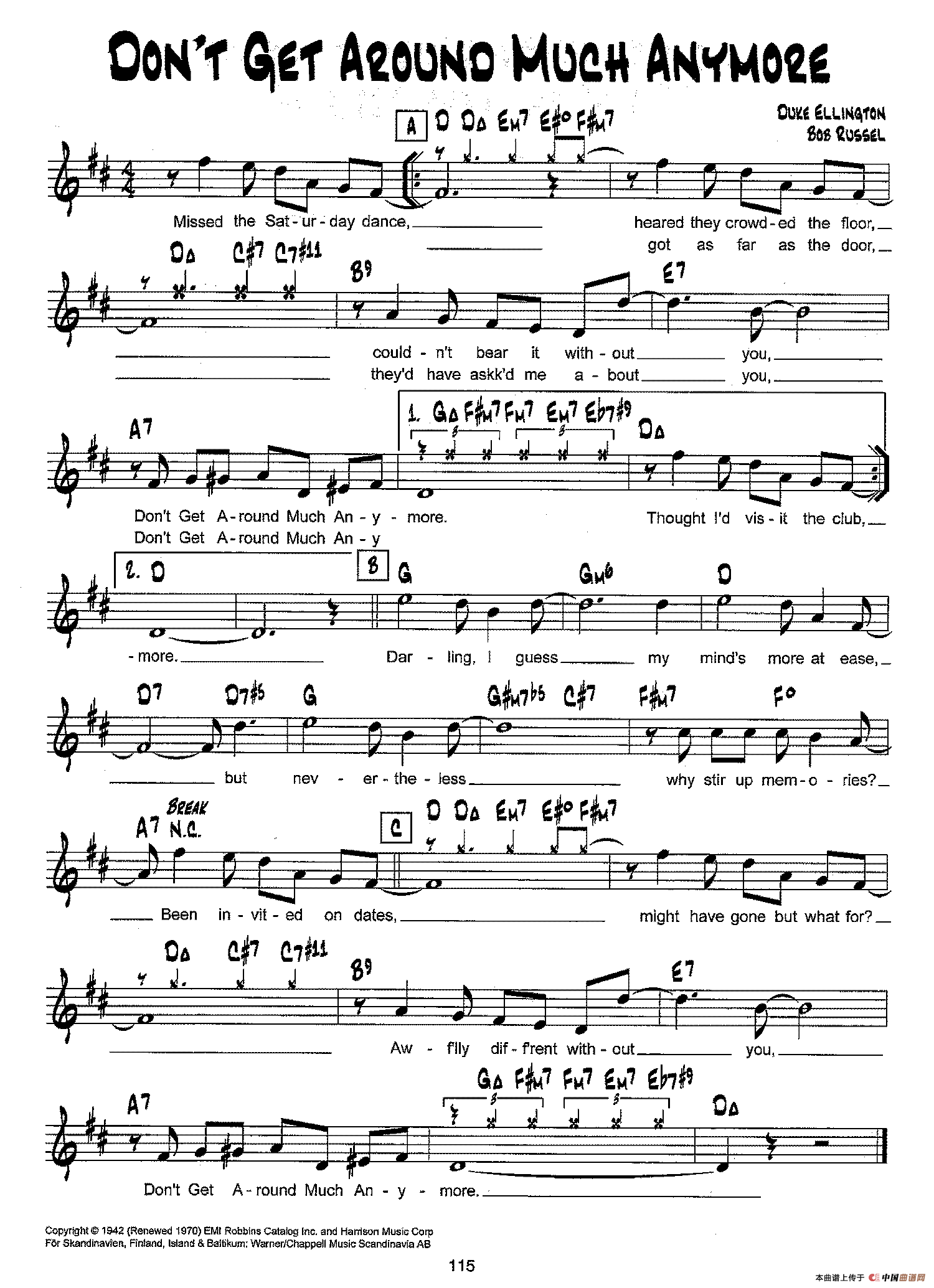 降B爵士乐谱:DON'T GET AROUND MUCH ANYMORE相关五线谱