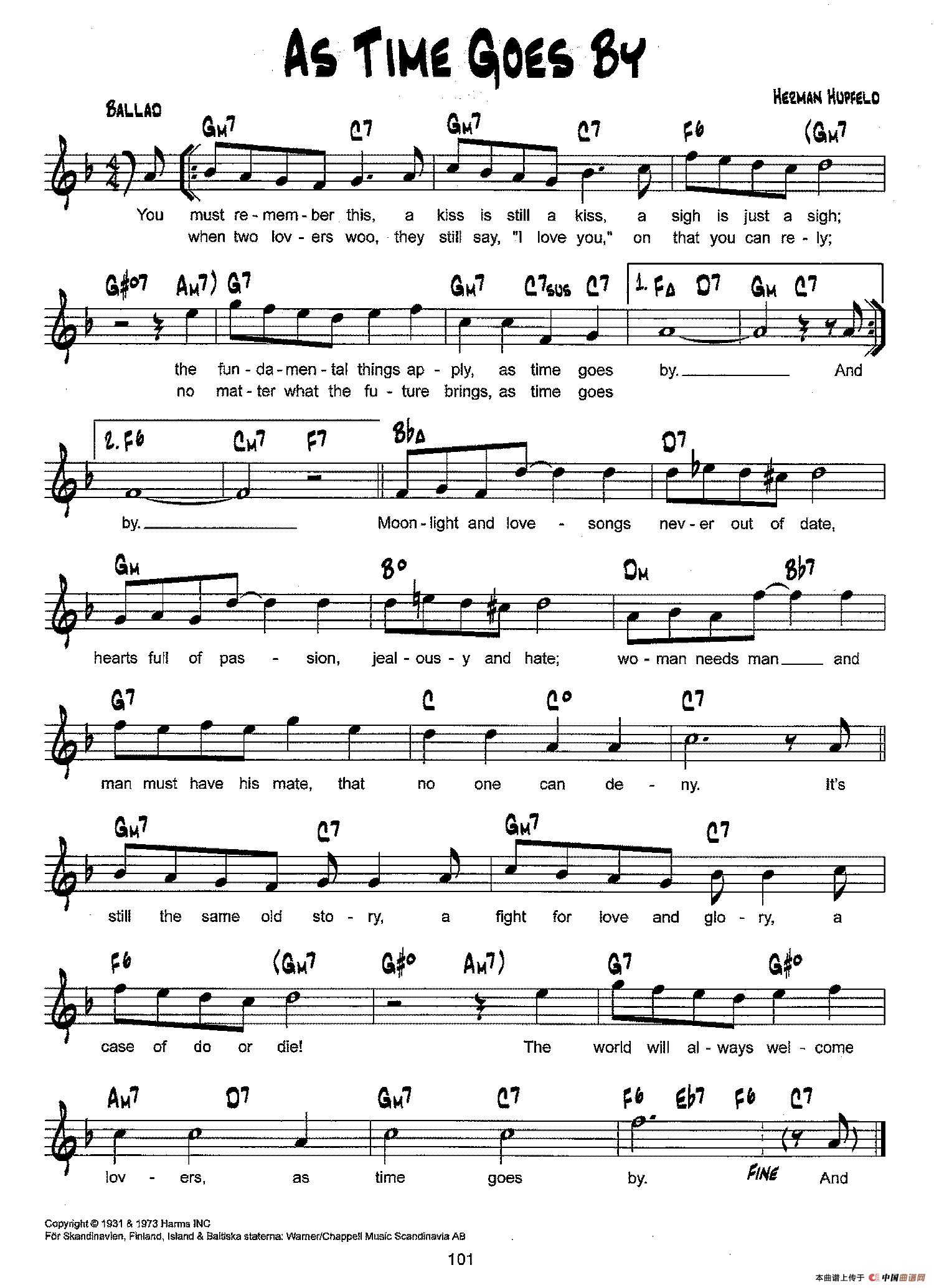 降B爵士乐谱:AS TIME GOES BY相关五线谱