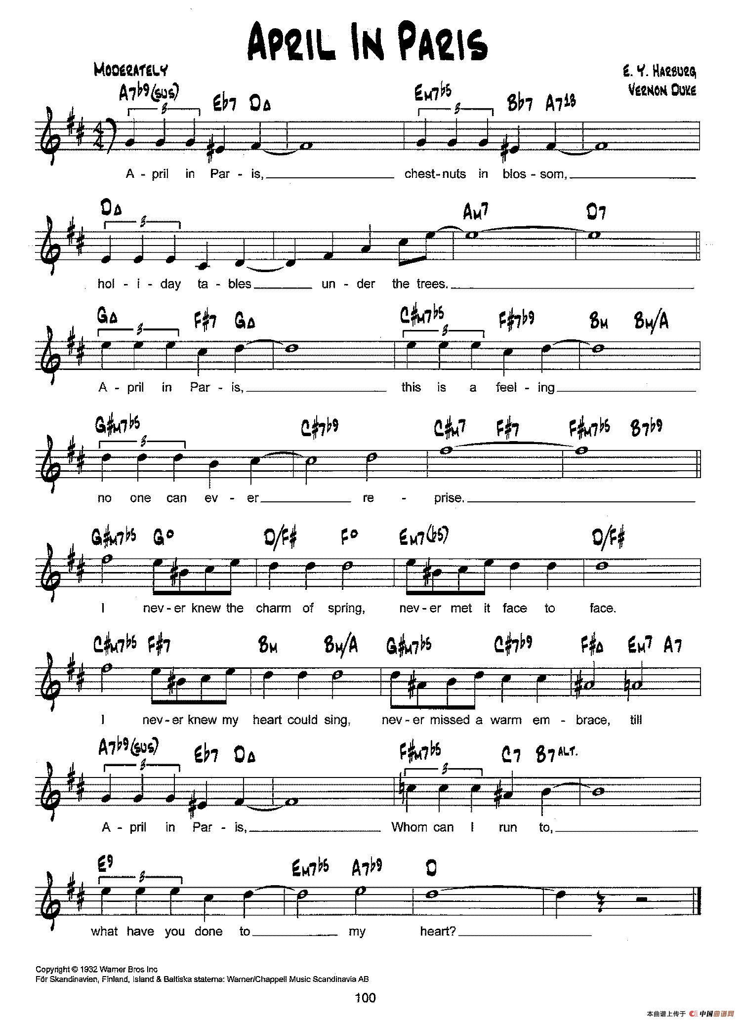 降B爵士乐谱:APRIL IN PARIS相关五线谱