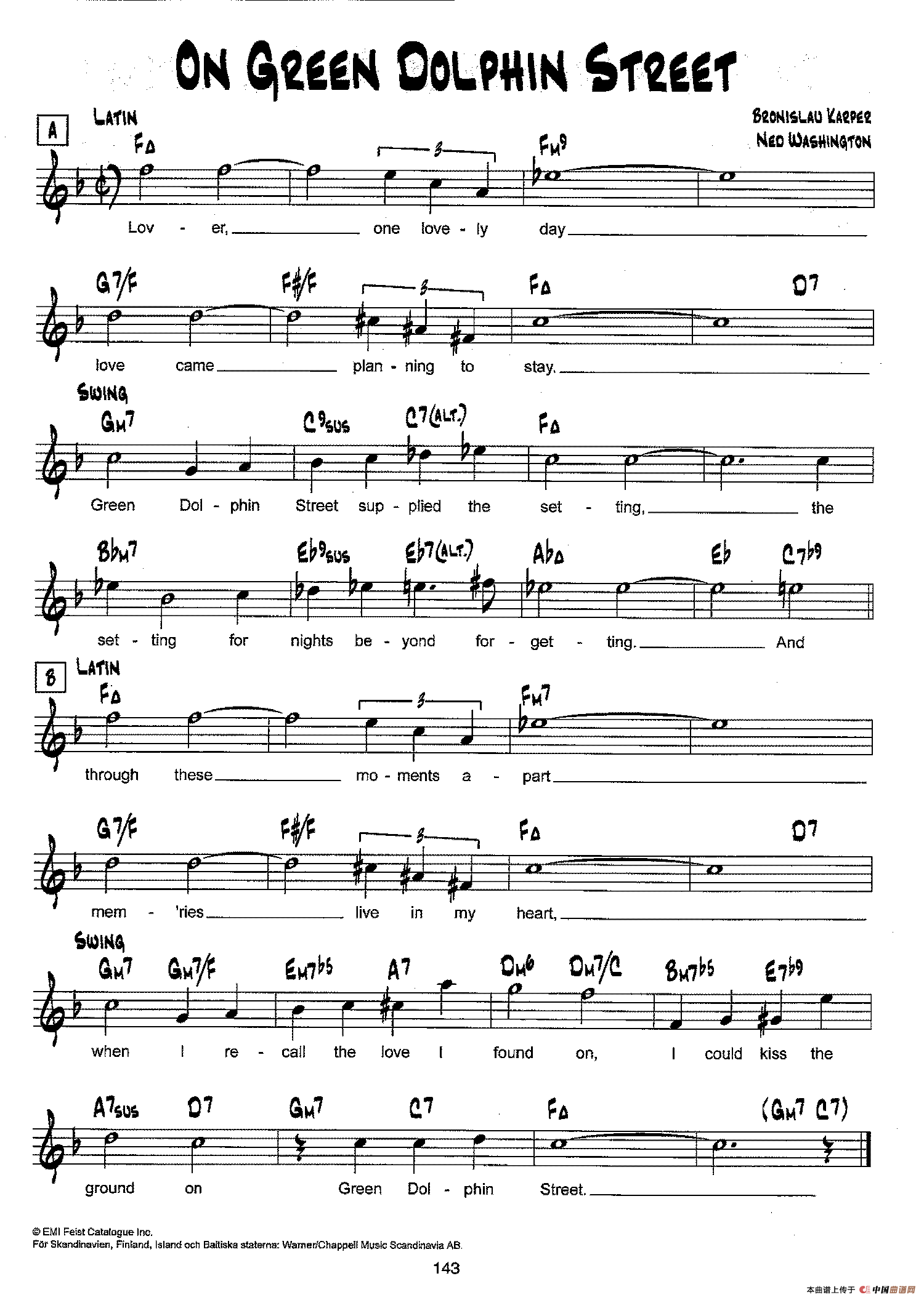 降B爵士乐谱:ON GREEN DOLPHIN STREET