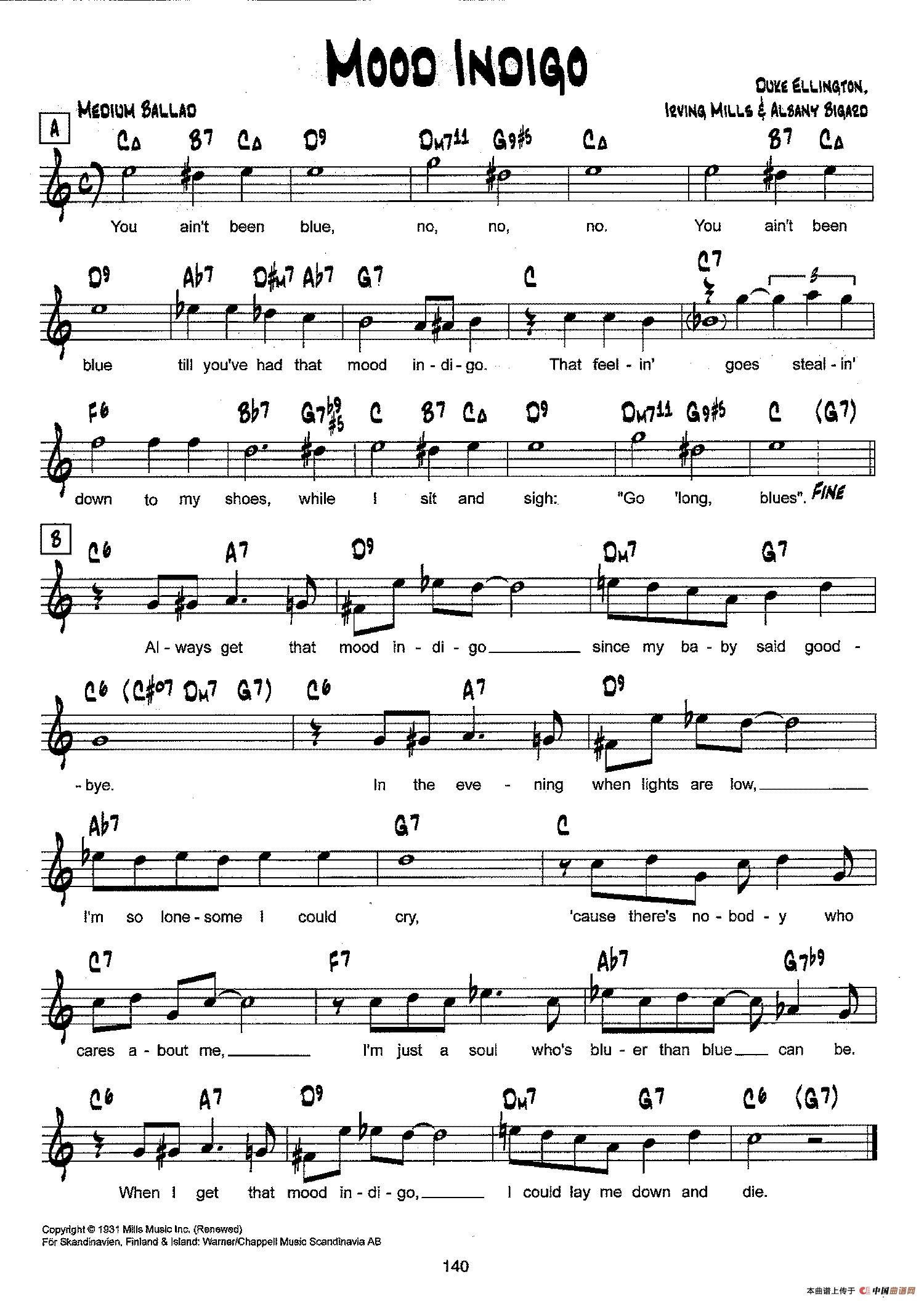 降B爵士乐谱:MOOD INDIGO相关五线谱