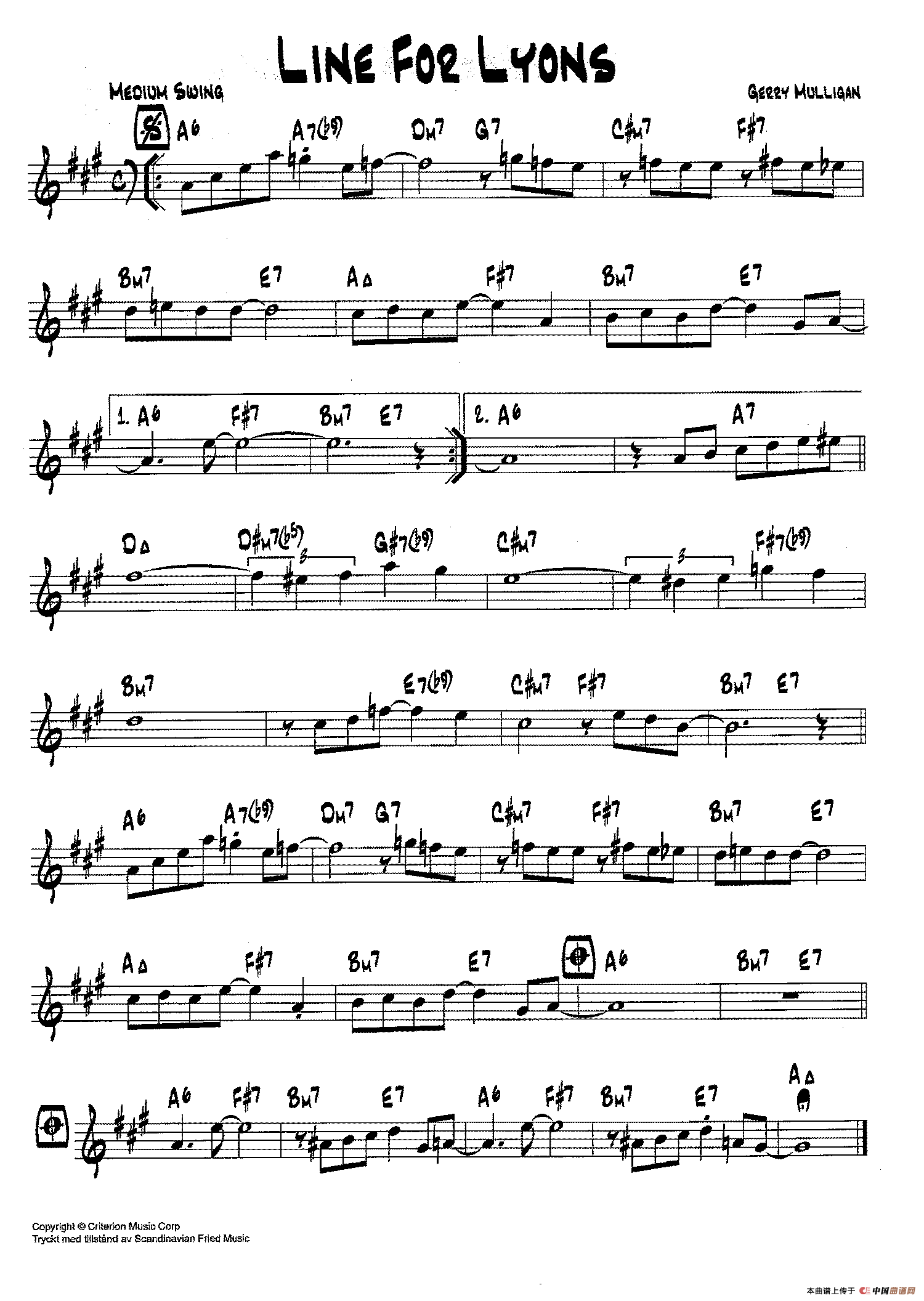 降B爵士乐谱:LINE FOR LYONS相关五线谱