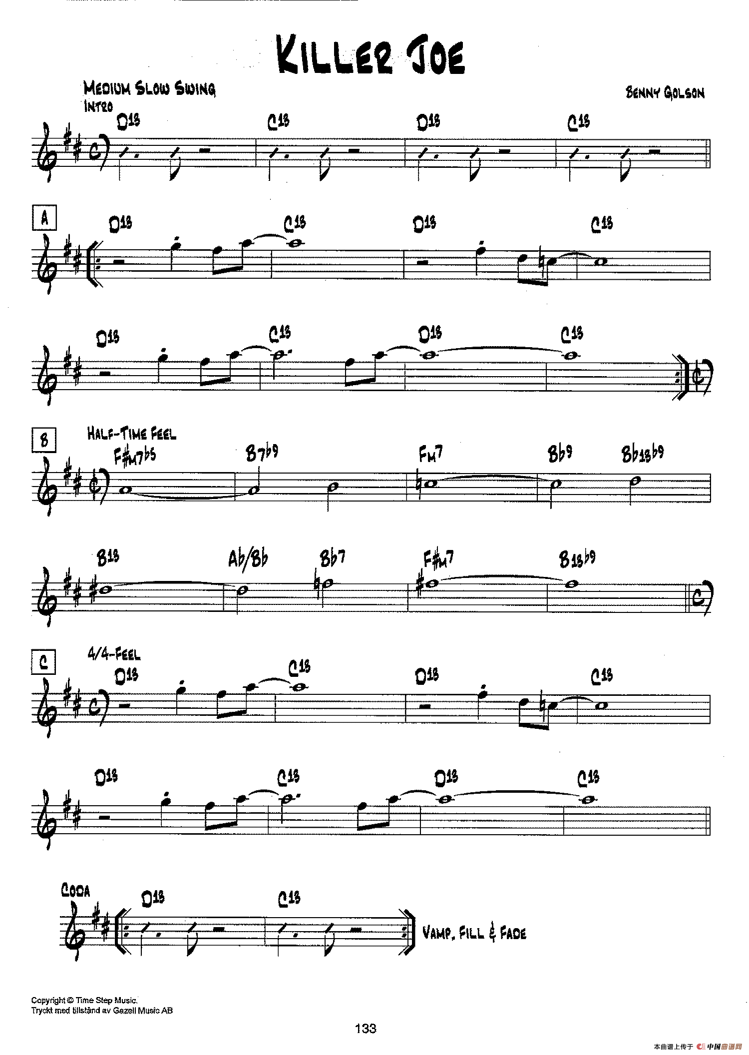 降B爵士乐谱:KILLER JOE相关五线谱