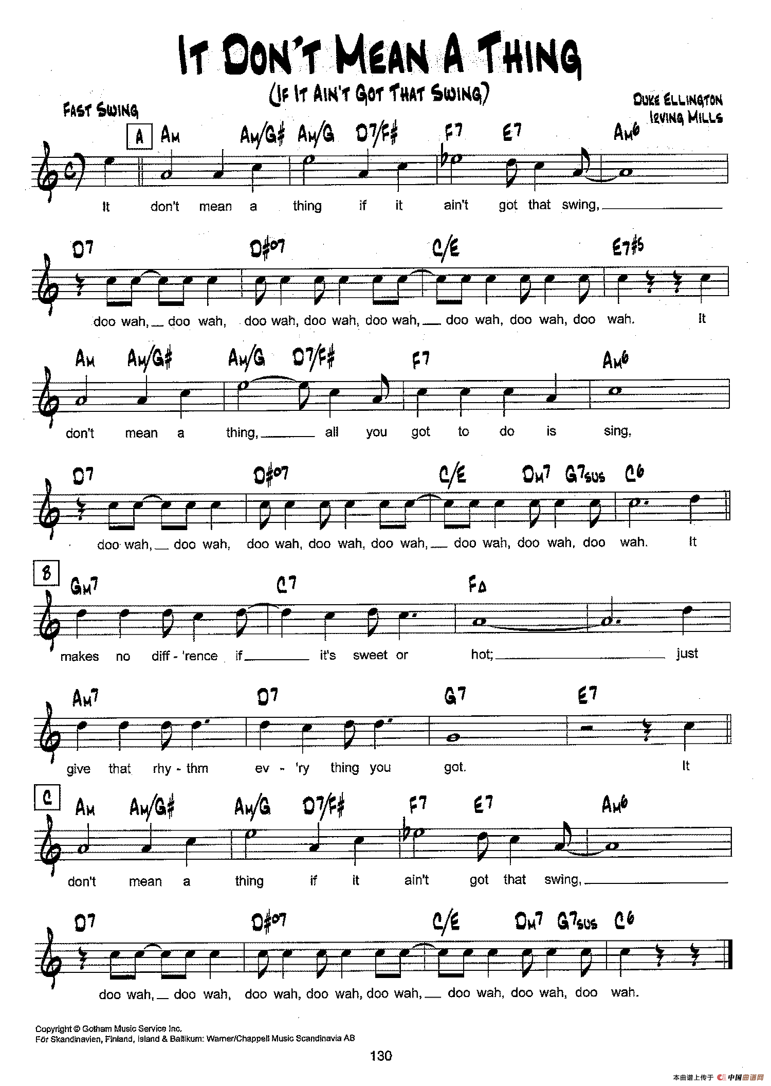 降B爵士乐谱:IT DON'T MEAN A THING相关五线谱