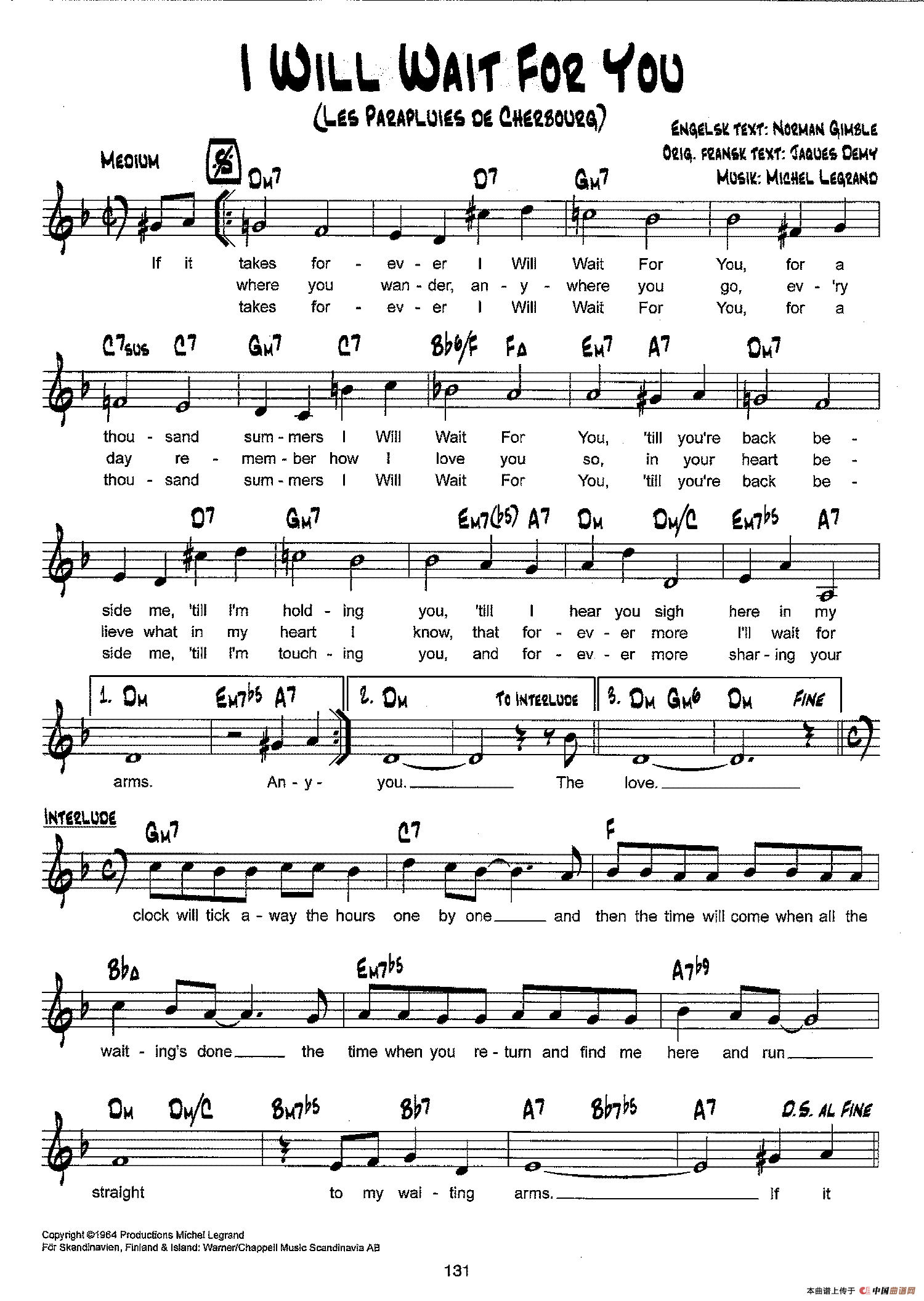 降B爵士乐谱:I WILL WAIT FOR YOU相关五线谱
