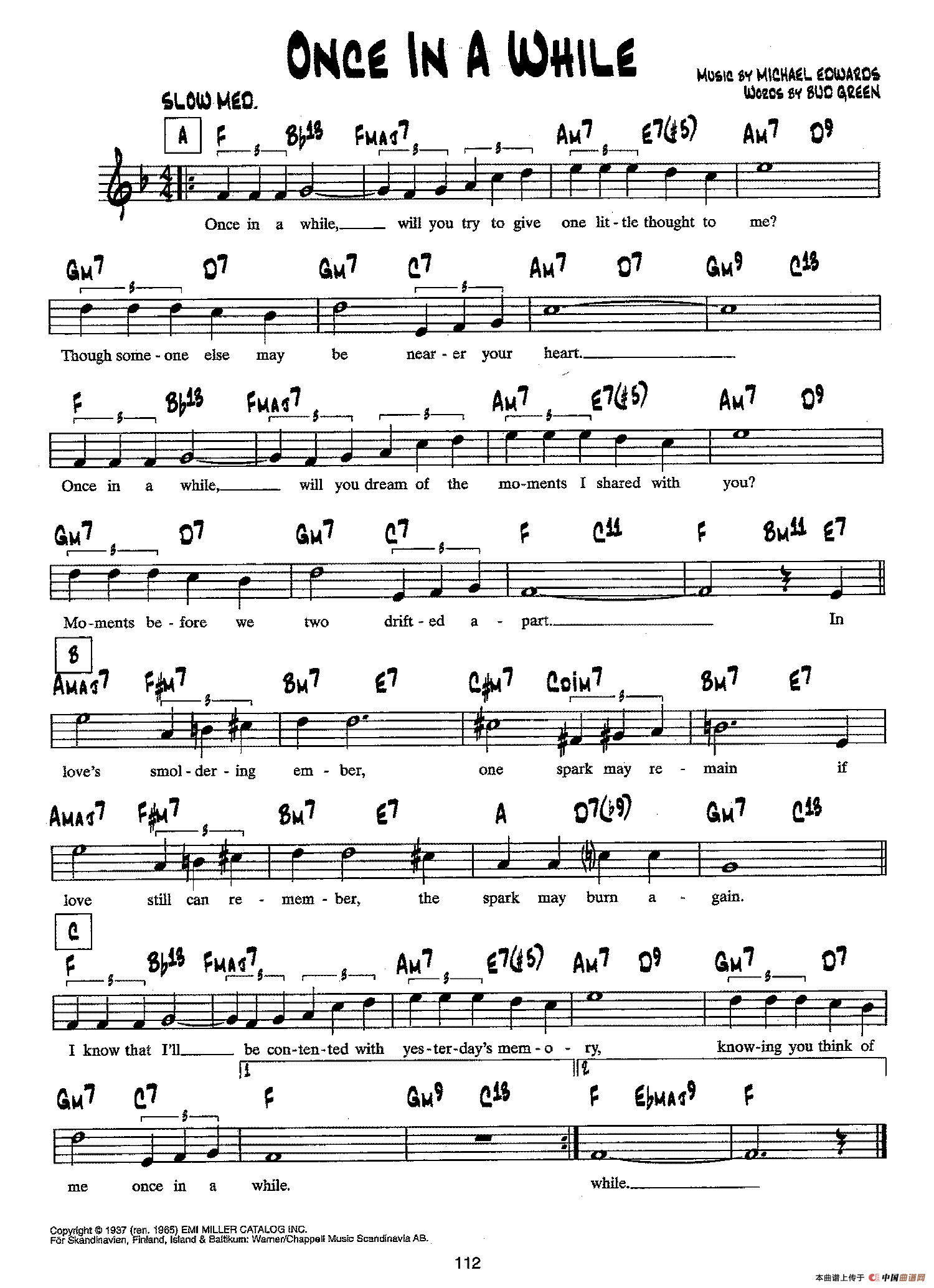 降B爵士乐谱:ONCE IN A WHILE相关五线谱