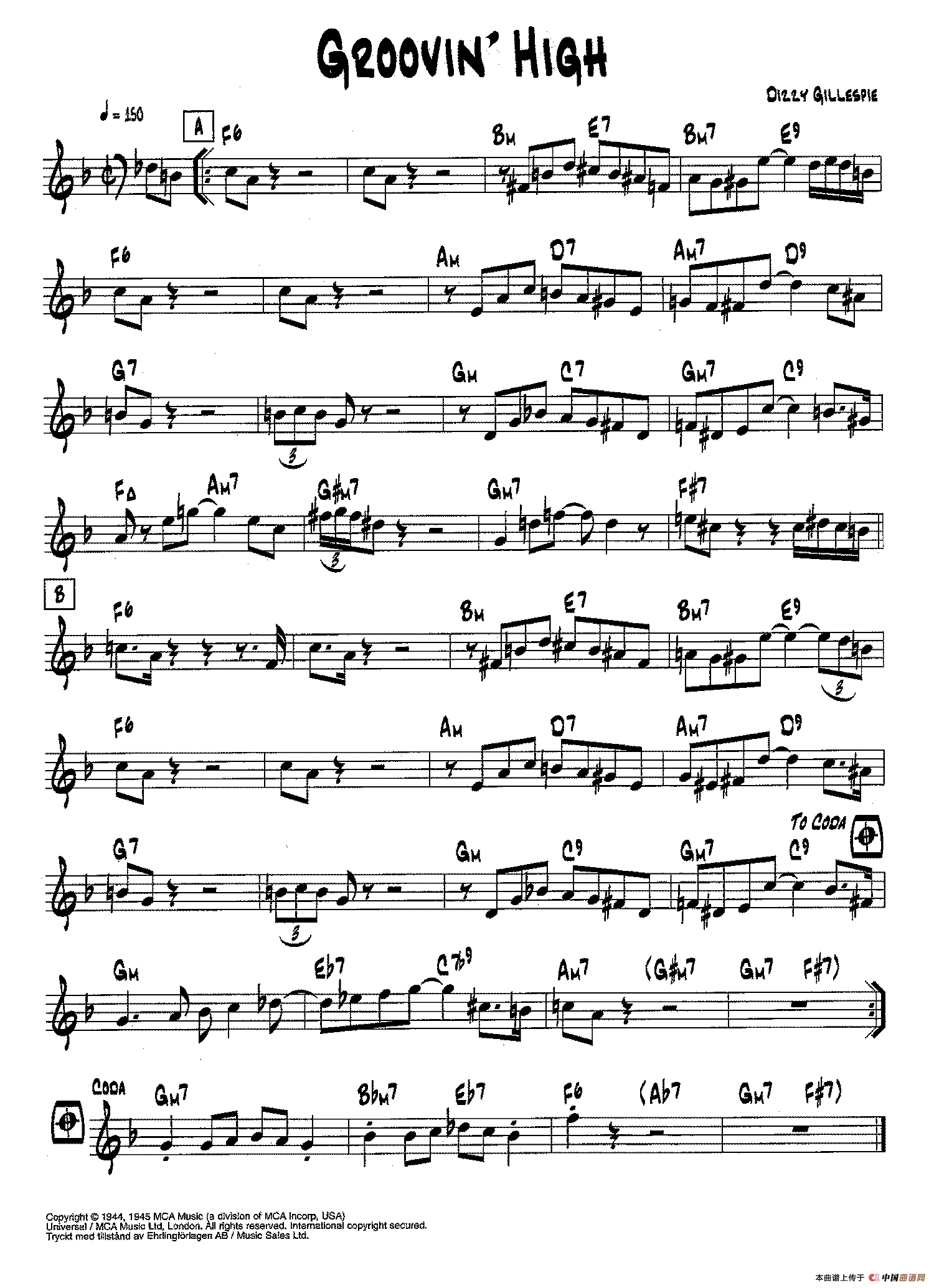 降B爵士乐谱:GROOVIN' HIGH