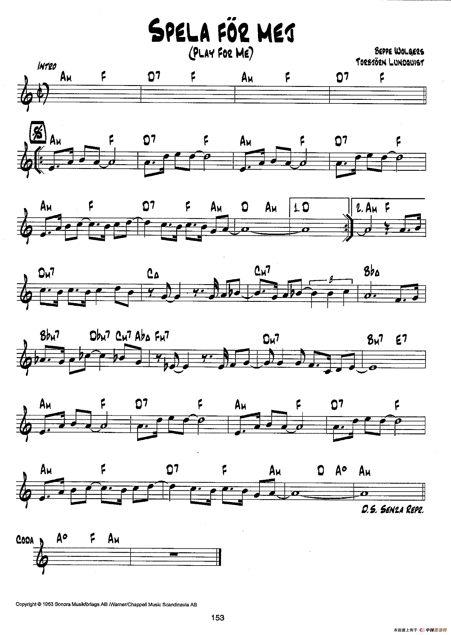 降B爵士乐谱:SPELA FOR MEJ相关五线谱