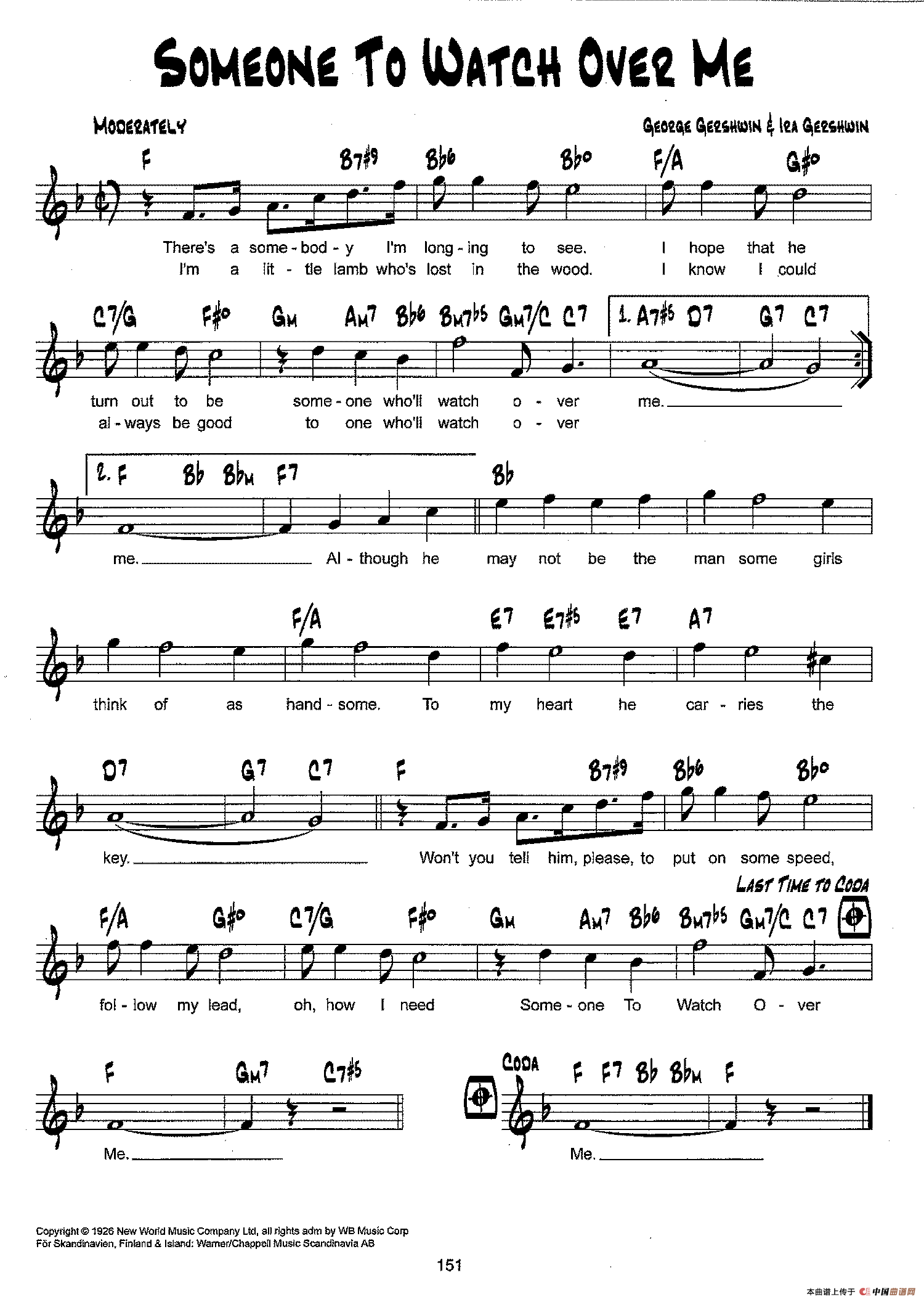 降B爵士乐谱:SOMEONE TO WATCH OVER ME