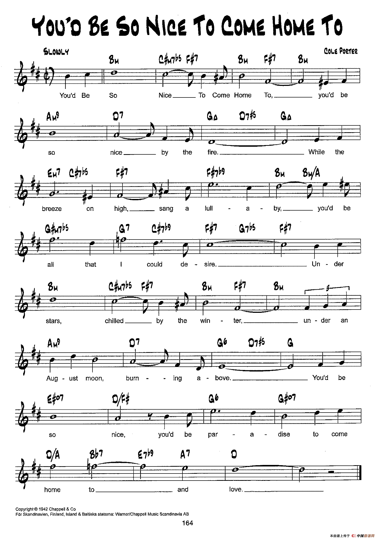 降B爵士乐谱:YOU'D BE SO NICE TO COME HOME TO