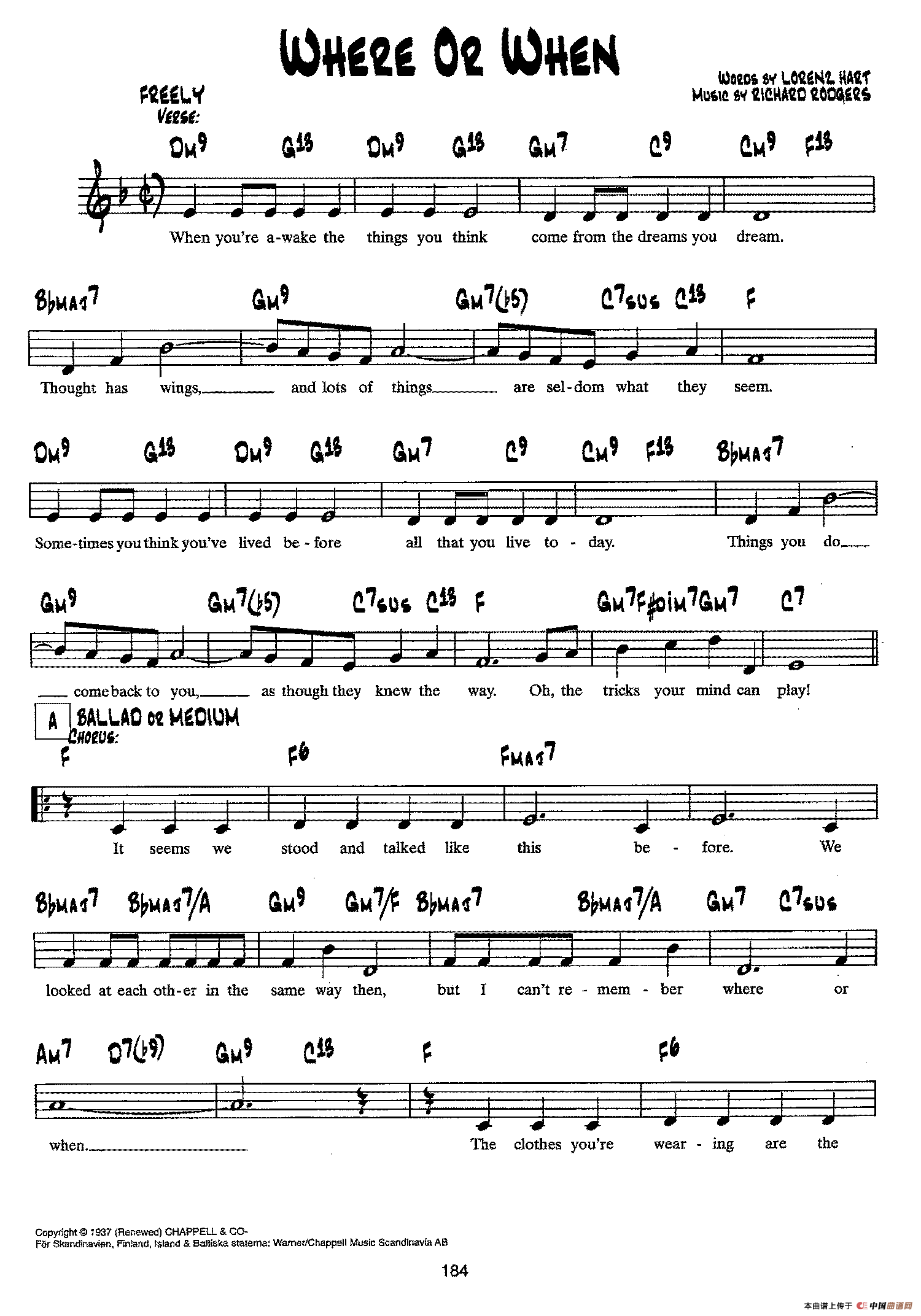 降B爵士乐谱:WHERE OR WHEN相关五线谱