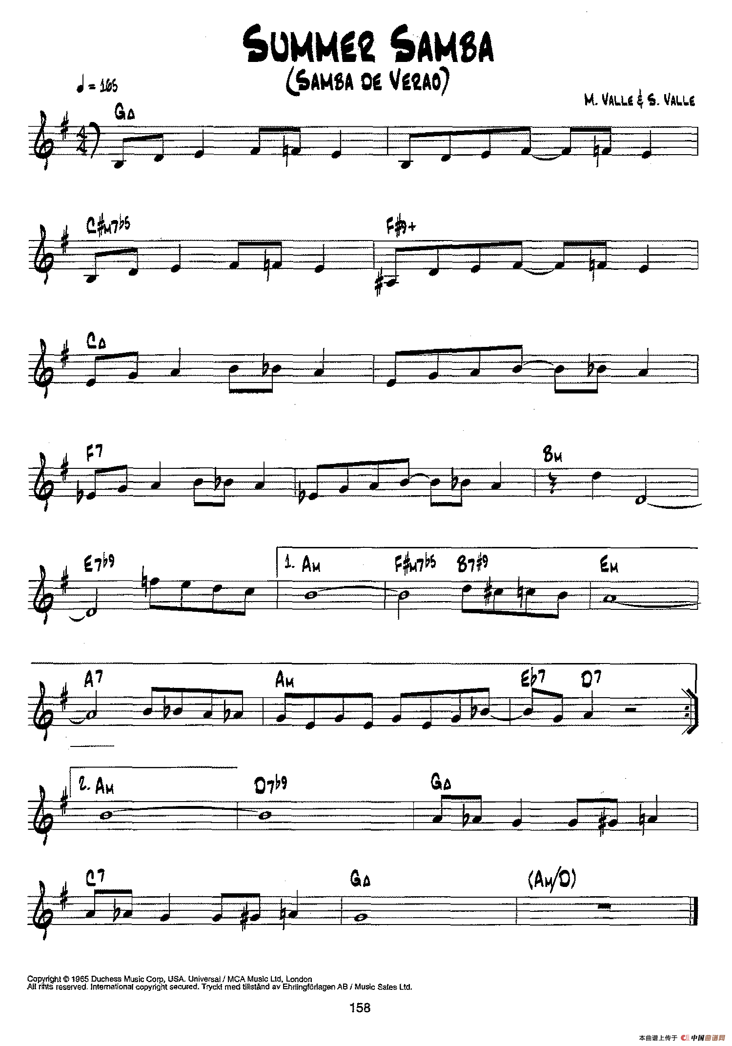 降B爵士乐谱:SUMMER SAMBA