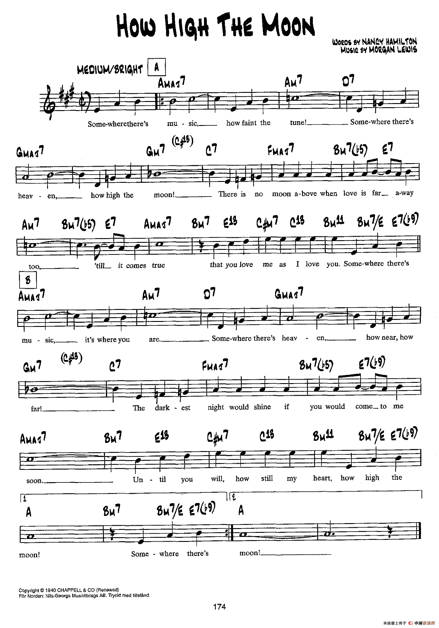 降B爵士乐谱:HOW HIGH THE MOON相关五线谱